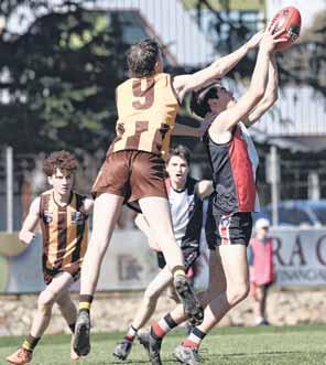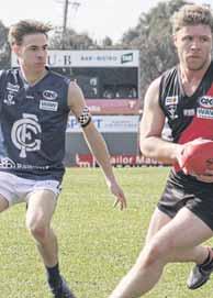 A MASSIVE last-quarter effort went to waste as the Murray Bushrangers bowed out of the NAB League finals on Saturday. The Bushies trailed by 31 points at the final break but came roaring back against Sandringham Dragons at Williamstown, with Jedd Longmire booting four goals.However, it wasn’t quite enough as the Dragons prevailed by 11.11 (77) to 10.7Longmire(67). turned the game on its head after being thrown forward late, while Caleb Mitchell and Thomas Cappellari were superb given the Bushies were running without a wing rotation by the closing stages.Max Clohesy played well on Harry Sheezel until he injured his groin, after which Foster Gardiner carried on the good work by shutting down the highlyratedThereDragon.wasanother outstanding display by Ryan Eyers at centre half-back and Ollie Hollands showed his class in only his second game back with the Bushies.Brayden George, Mitch Way and Josh Tweedale all left the ground injured leaving the Bushrangers with just one player on the bench. MACK wmack@ nemedia.com.au got