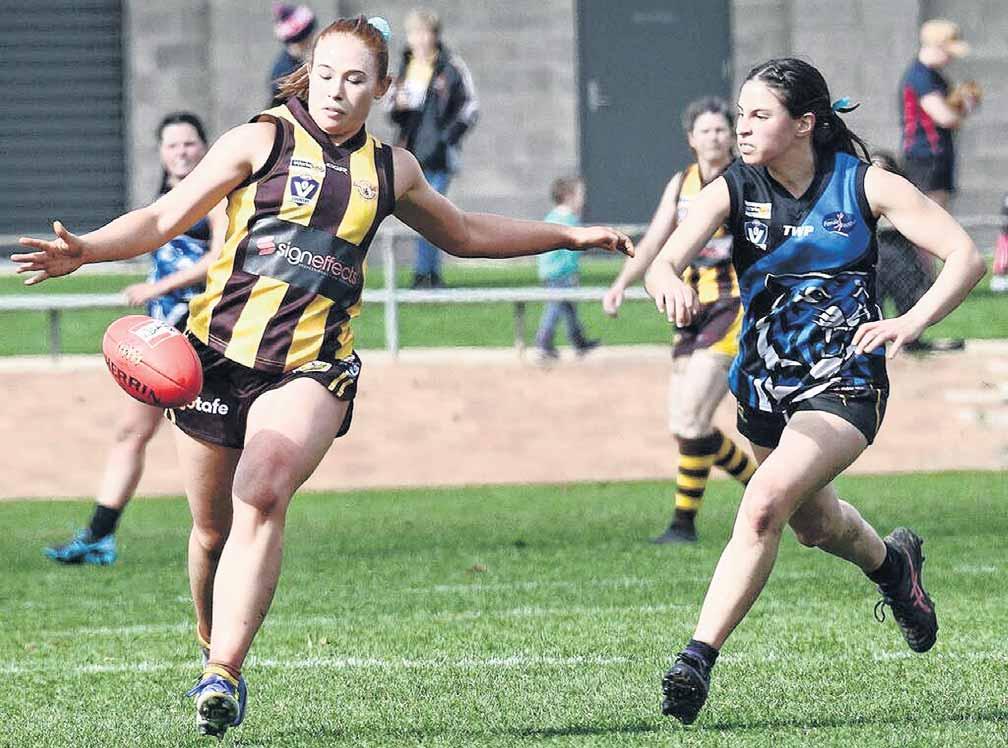GOOD TAKE: Leah Jenvey in action for Wangaratta in their loss to Yarrawonga.