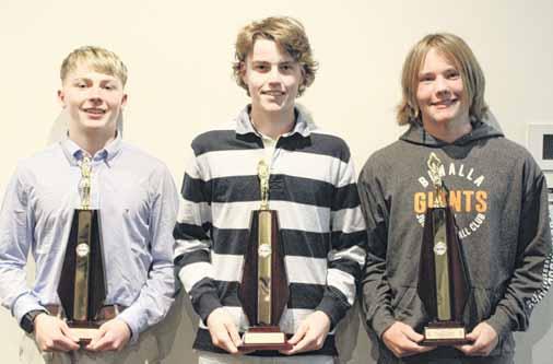 TRIPLE THREAT: The race for under 17 B&F was won by Benalla Giants’ Ryley Ely (not pictured), but the runners up award was split three ways between Preston Coleman (Kangaroos), Sam Rourke (Centrals) and Cooper Gracie (Benalla Giants).