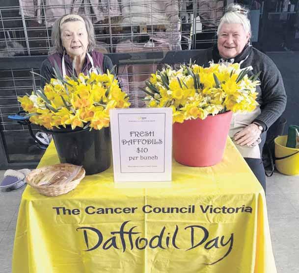 FULL BLOOM: The Cancer Council Victoria Wangaratta Volunteer Group thanked the community for their support on Daffodil Day last week. Volunteers including (from left) Marg Sartori and Robyn Dunstan, pictured in the post office arcade, sold 95 bunches of daffodils on the day and with a few donations, expect to make $1000 or more in support of life saving research.