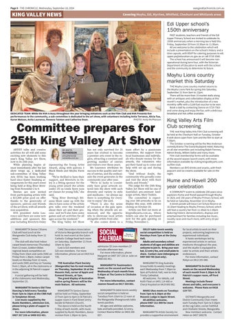 Artists can nd out more at kingvalleyarts.com.au, where tickets can also be purchased now for the gala opening on Friday, November 1.