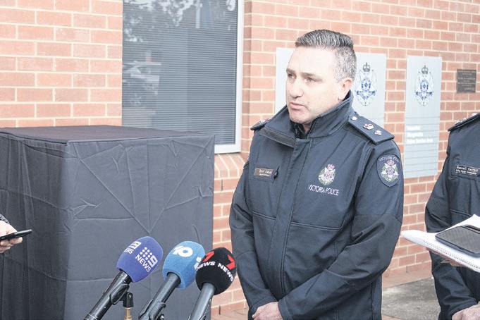 Superintendent Brett Kahan addressed media outside of Benalla Police Station on Monday afternoon in the force’s first