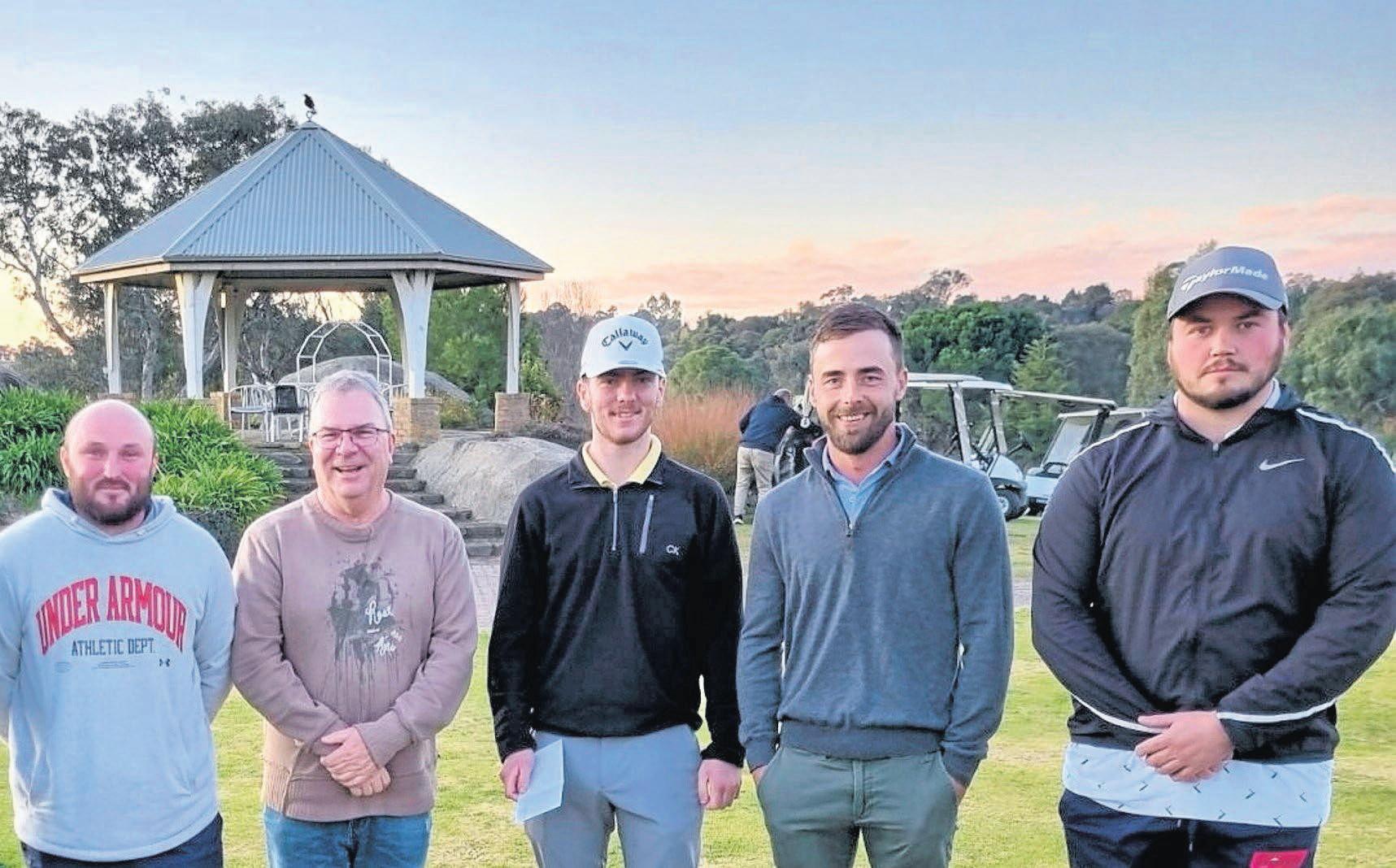 Two Person Ambrose winner Jake Veney, sponsor Mark Sheridan, third place Swayde Honeman and Cameron Hobbs and winner Casey Wall