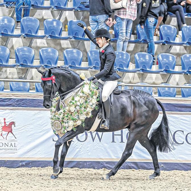 Liz Daly onboard Tremayne Coachella a er winning Grand Champion Ridden Saddle Horse.