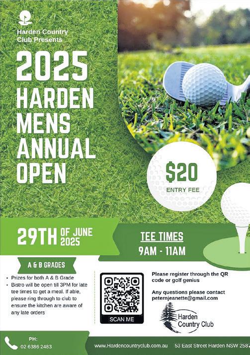 Coming up on June 29 is the 2025 Harden Mens Annual Open for A and B Grades. Entry fee is $20 with prizes for both A and B Grades.