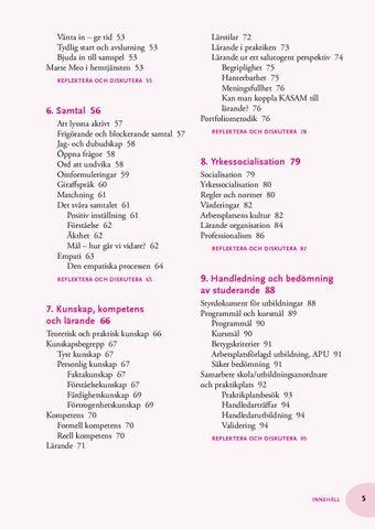 8. Yrkessocialisation 79 Socialisation 79 Yrkessocialisation 80 Regler och normer 80 Värderingar 82 Arbetsplatsens kultur 82 Lärande organisation 84 Professionalism 86 Reflektera och diskutera 87