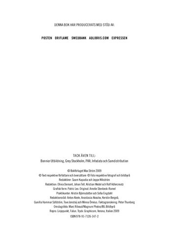 TACK ÄVEN TILL : Bonnier Utbildning, Grey Stockholm, PAR, Infodata och Samdistribution Š BokfÜrlaget Max StrÜm 2009 Š Text respektive fÜrfattare och Üversättare Š Foto respektive fotograf och bildbyrü RedaktÜrer: Saam Kapadia och Jeppe WikstrÜm Redaktion: Olivia Demant, Johan Tell, Kristian Wedel och Rolf Adlercreutz Grafisk form: Patric Leo. Original: Amelie Stenbeck-Ramel Praktikanter: Kristin BjÜrnsdotter och Sofia Engdahl Redaktionsrüd: Anton Abele, Anastasia Akoulov, Kerstin Bergeü, Gunilla Hammar SäfstrÜm, Tove Jonstoij och Minna ÖrnÊus. Faktagranskning: Peter Thunborg Omslagsfoto: Marc Riboud/Magnum Photos/IBL Bildbyrü Repro: Linjepunkt, Falun. Tryck: Graphicom, Verona, Italien 2009 ISBN 978-91-7126-147-2