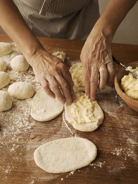 • Dela degen i 20 lika stora bollar. Kavla ut varje boll till en rundel, 10–12 centimeter i diameter.