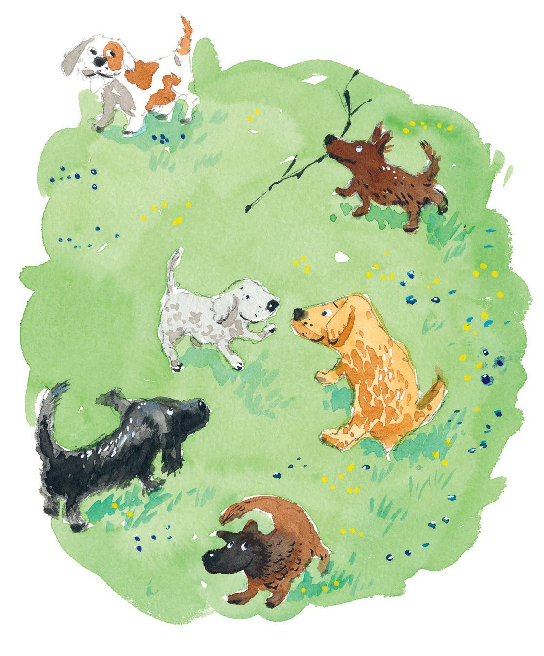 Voffevar som små valpar är mest. När skolan var slut ville han leka, nosa, brottas och ha kul med sina kompisar ända tills det var middagsdags. Sen åt han middag. Helst leverpastej. Då kunde han somna nöjd och drömma om pinnar och träd han kissat på.