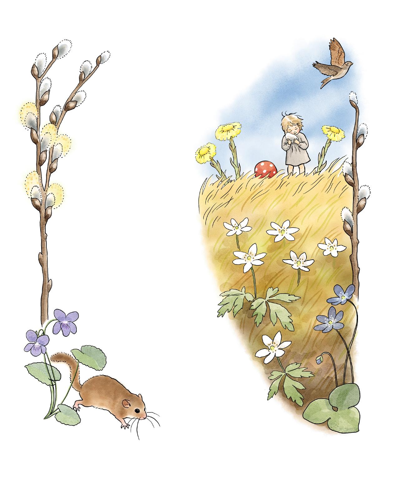 Skogen var full av vårtecken. Sömniga humlor som surrade bland tussilagosolar och blommande sälg. Sädesärlan var tillbaka efter sin långa vinterresa och kvittrade glatt sitt tsiilitt, tsiivitt. Vi kände livet spritta i oss och kunde inte låta bli att sjunga.
