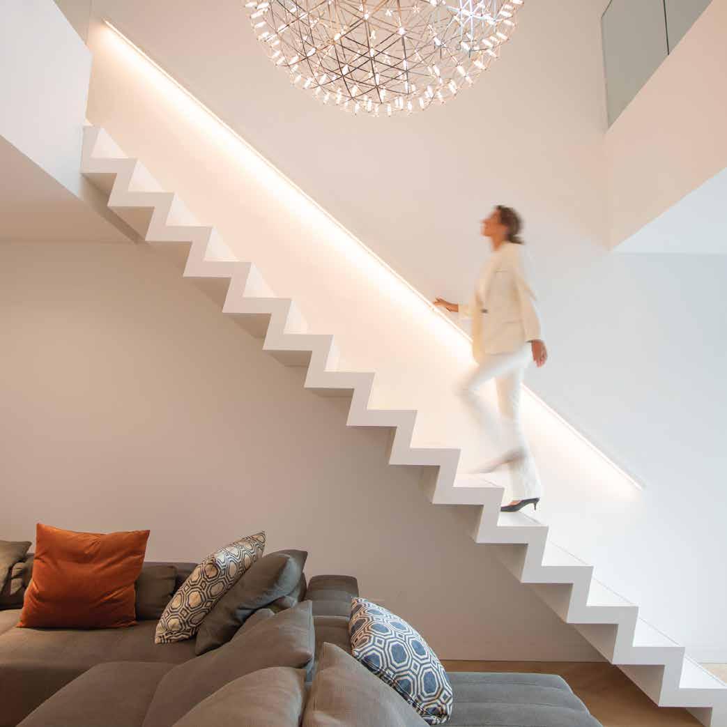 Ongemerkt laat je jezelf gidsen op jouw route binnenshuis. Elke passage wordt verlicht, volautomatisch, intuïtief, zelfdenkend. Of hou je hand aan de knop om je van het licht te bedienen.