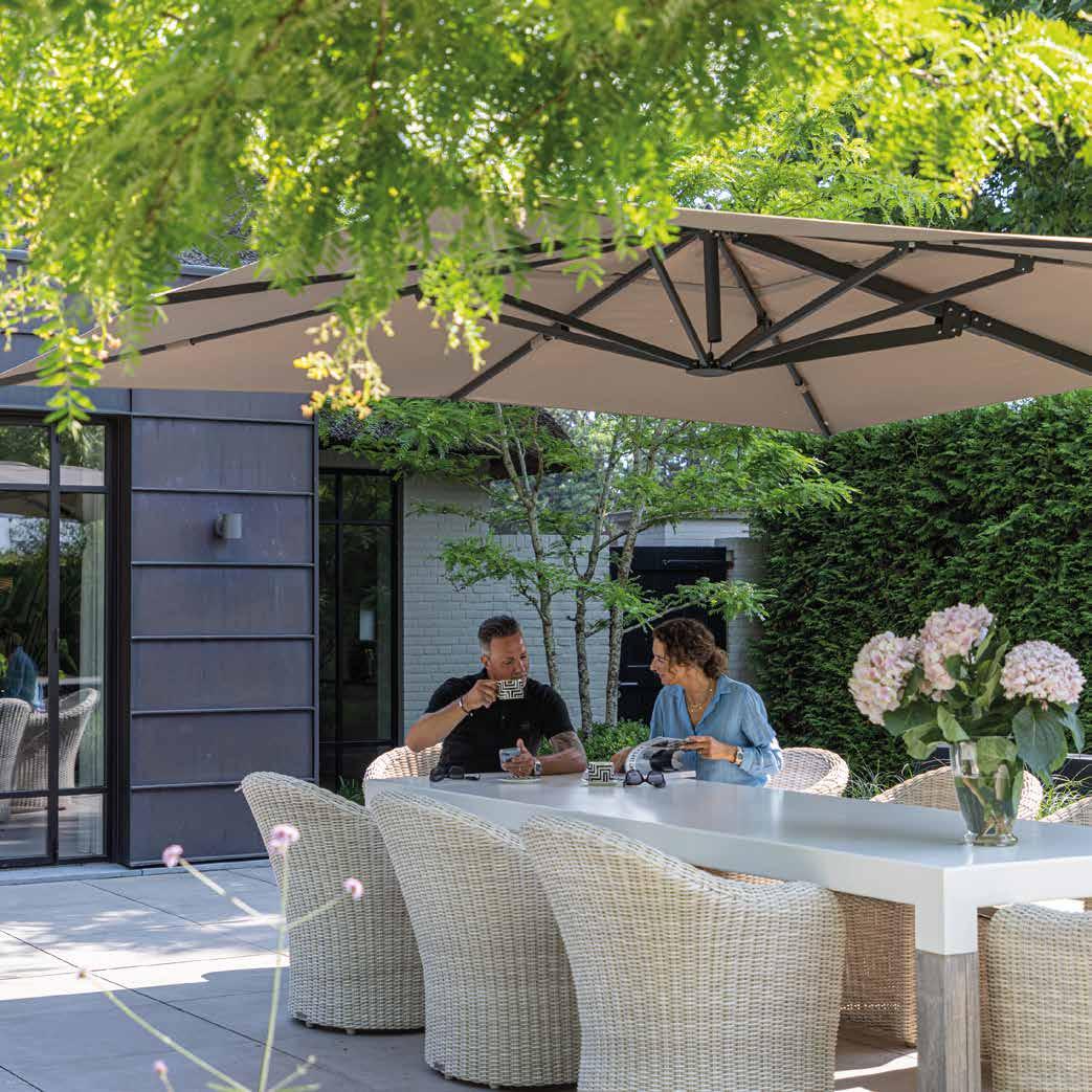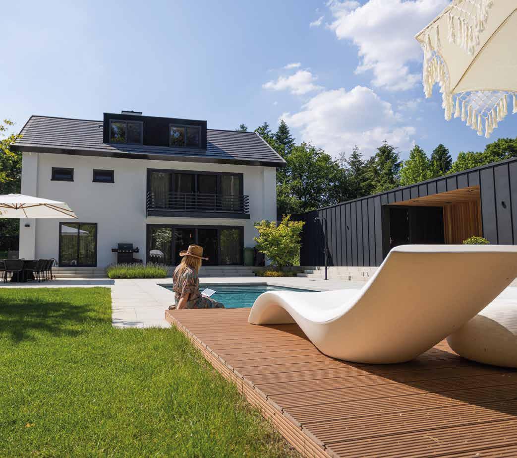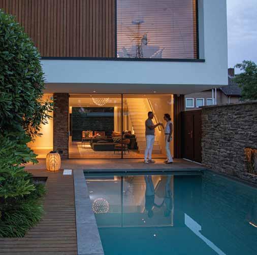 Ook buitenshuis is jouw luxe en comfort voelbaar. Slimme technieken regelen zowel temperatuur, verlichting als het roldek van het zwembad. Via je telefoon of tablet houd jij contact.