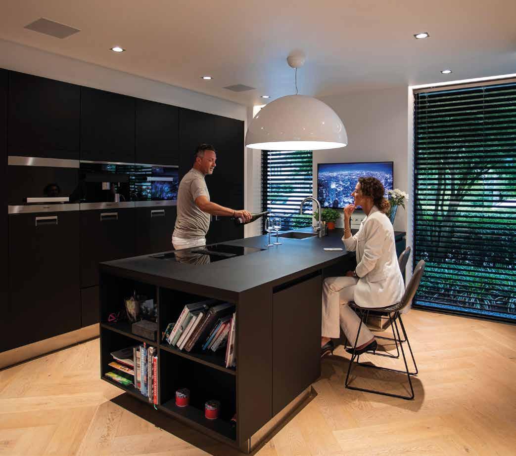 Lekker wonen is lekker genieten. Proef en geniet van de modernste technieken, ook in de keuken. Het is de plek waar alles samenkomt, waar je de dag deelt en samen ontspannen geniet. Vergezeld van de juiste verlichting, geheel automatisch, creëer je samen de heerlijkste menu’s. Welkom in de excellente keuken, waar unieke totaaloplossingen geserveerd worden op een bedje van liefde, met kwaliteit en passie bereid.