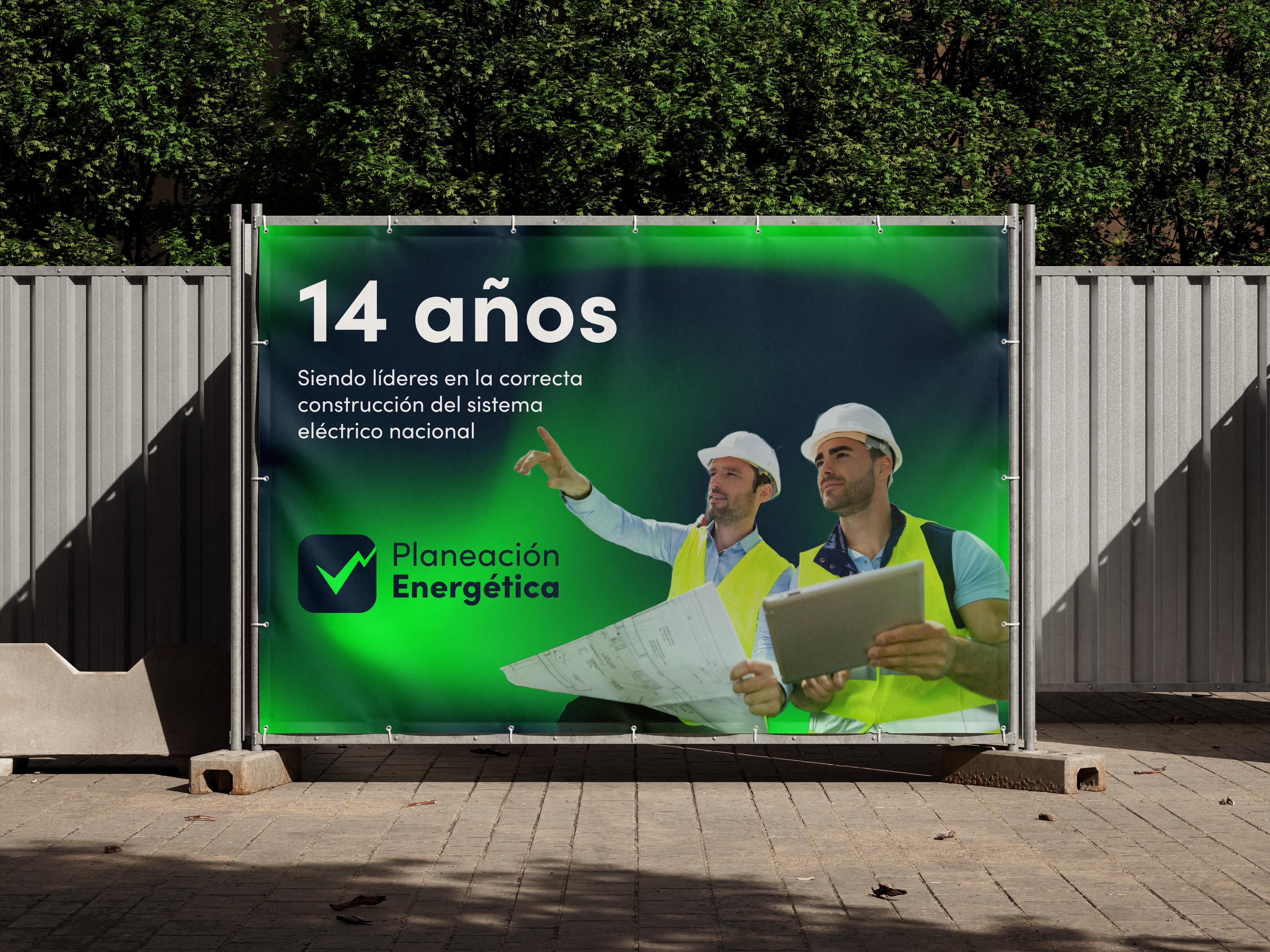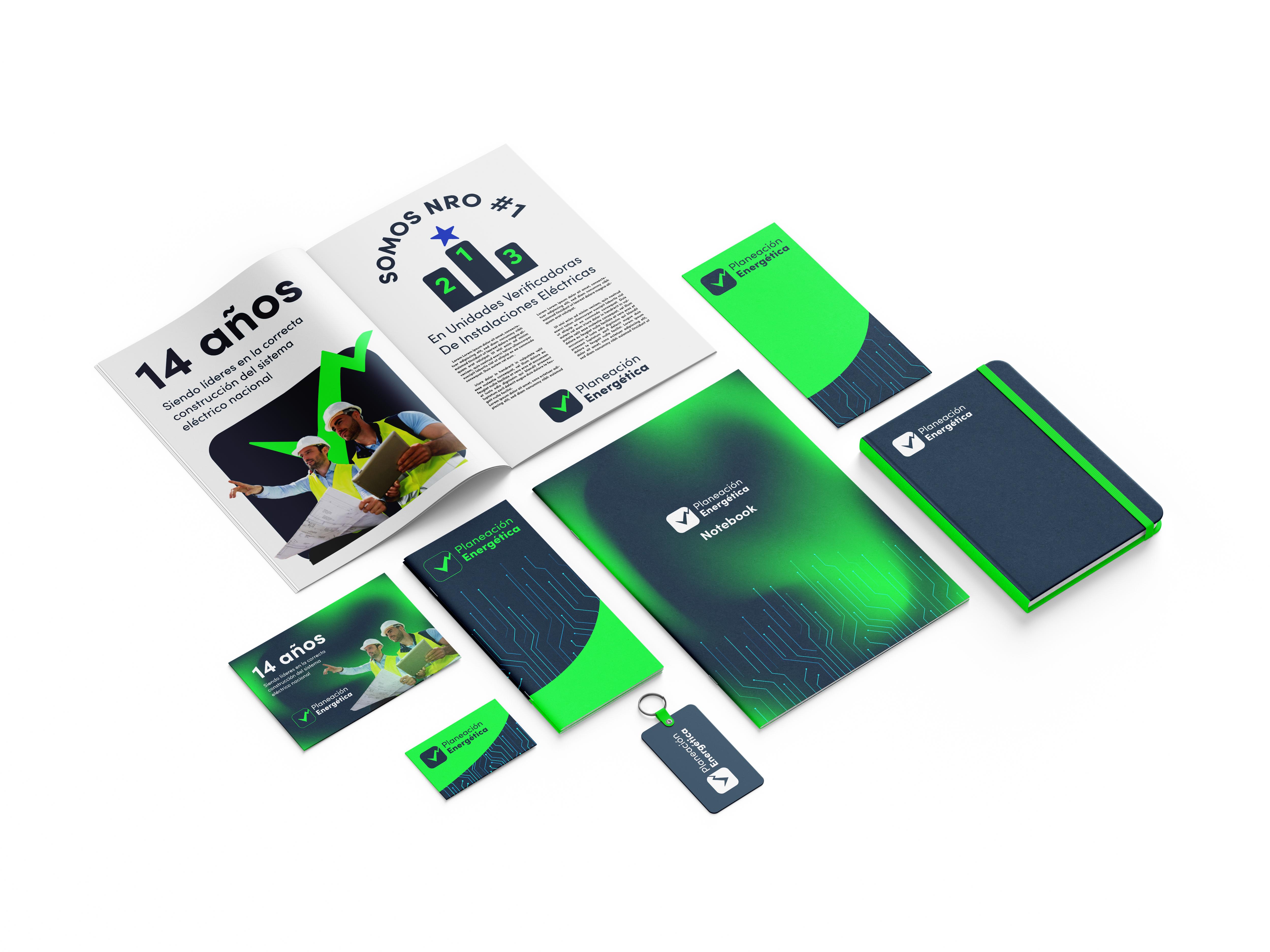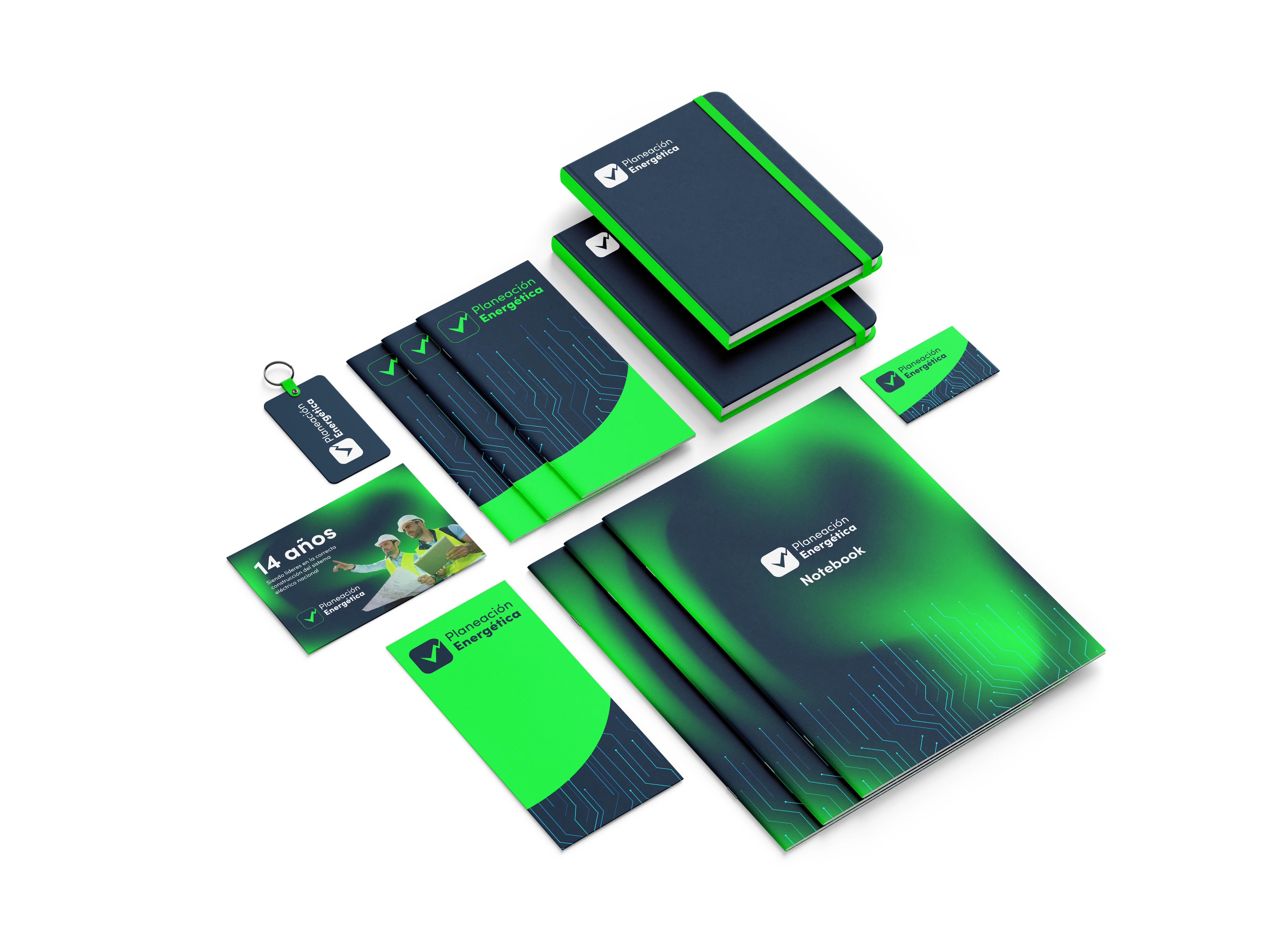 Seguido de el uso de la tipografía “Sofía Pro” en su versión “regular” para la palabra “Planeación” y el uso de su versión “Bold” para la palabra “Energética”. Generando el contraste necesario para realizar un impacto visual en la lectura, la combinación de estos elementos combina perfectamente el aspecto amigable y profesional que se quiere reflejar en la marca. Sencillo y poderoso.