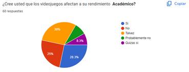 El mayor número de personas encuestadas se encuentra demostrado en el 30% que cree que tal vez los videojuegos afectan al rendimiento académico.