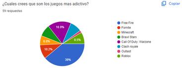 El 39% de las personas encuestadas creen que el videojuego mas adictivo es Free Fire, siendo el mayor porcentaje.
