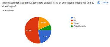 El22%delaspersonasencuestadasrespondieronquesihaydificultadpara concentraseensusestudiosporlosvideojuegos