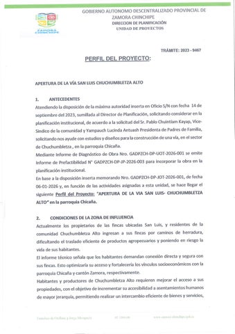 The "UNIDAD DE PROYECTOS GADPZCH" user's logo