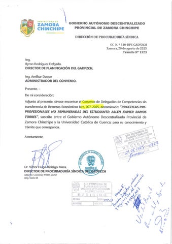 The "UNIDAD DE PROYECTOS GADPZCH" user's logo