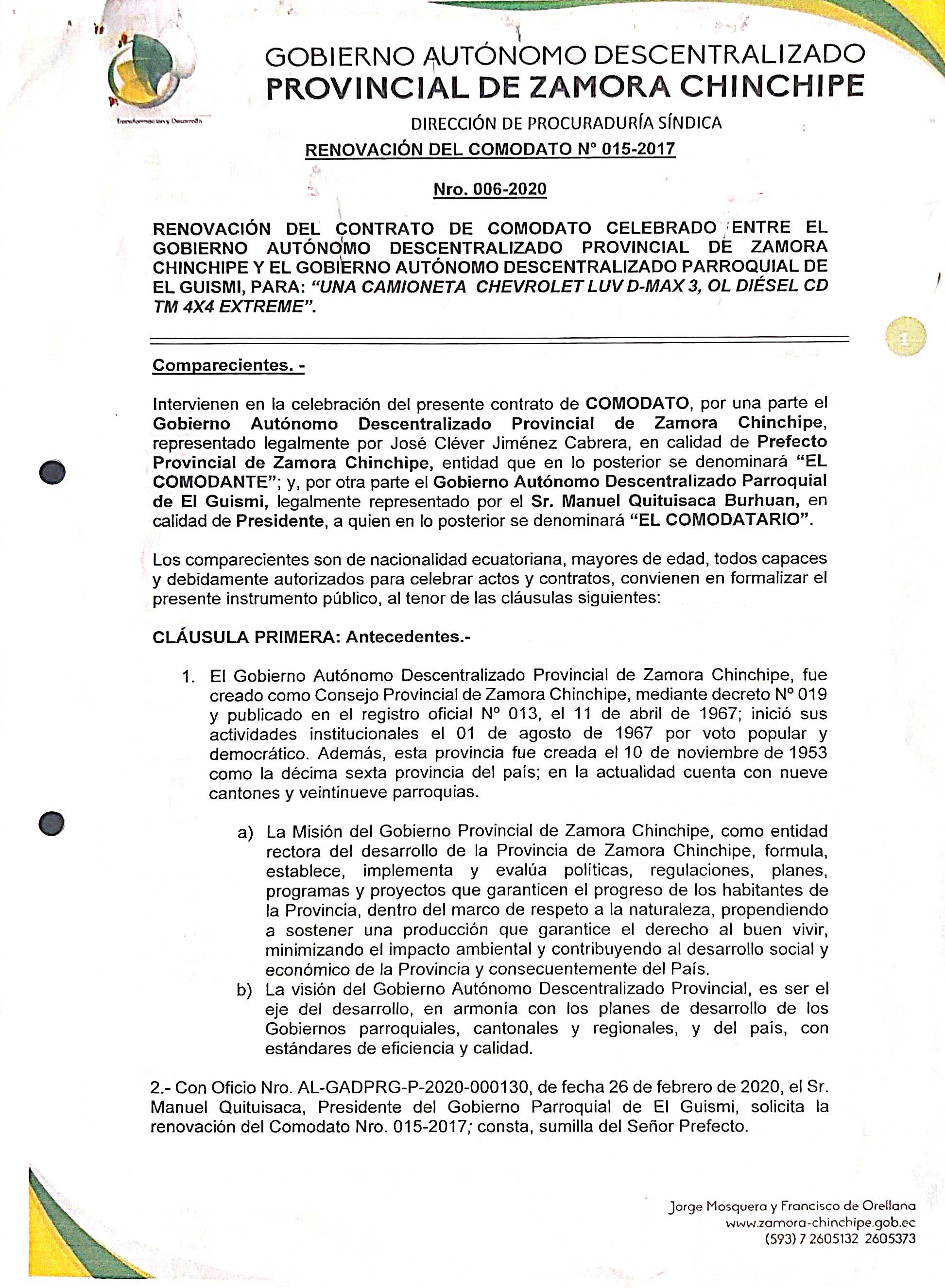 0062020renovacioncomodato CHEVROLET LUV D-MAX 3, OL DIESEL CD TM 4X4 EXTREME- GUISMI
