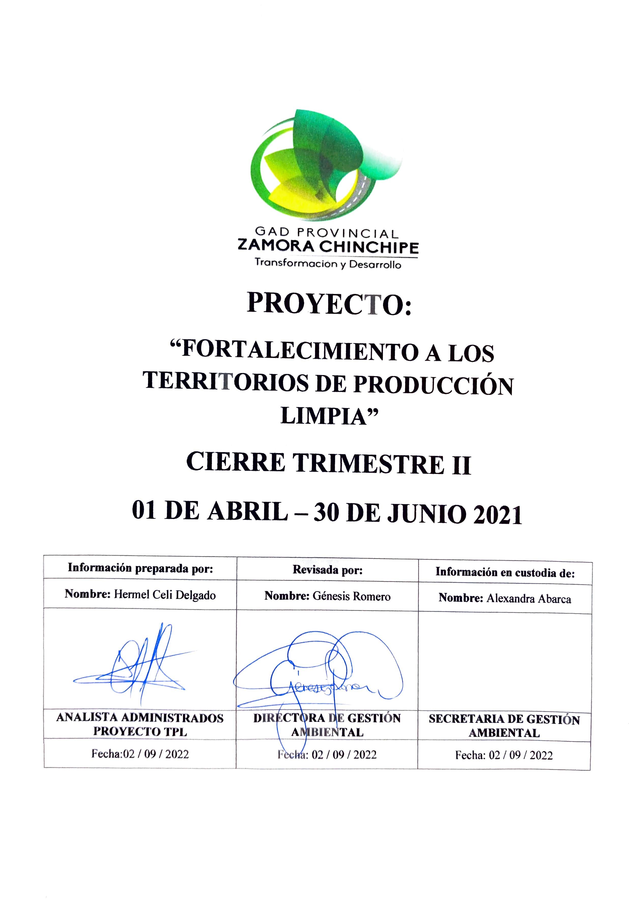 Cierre 2021 T2 proyecto Fortalecimiento a los territorios de Producción Limpia