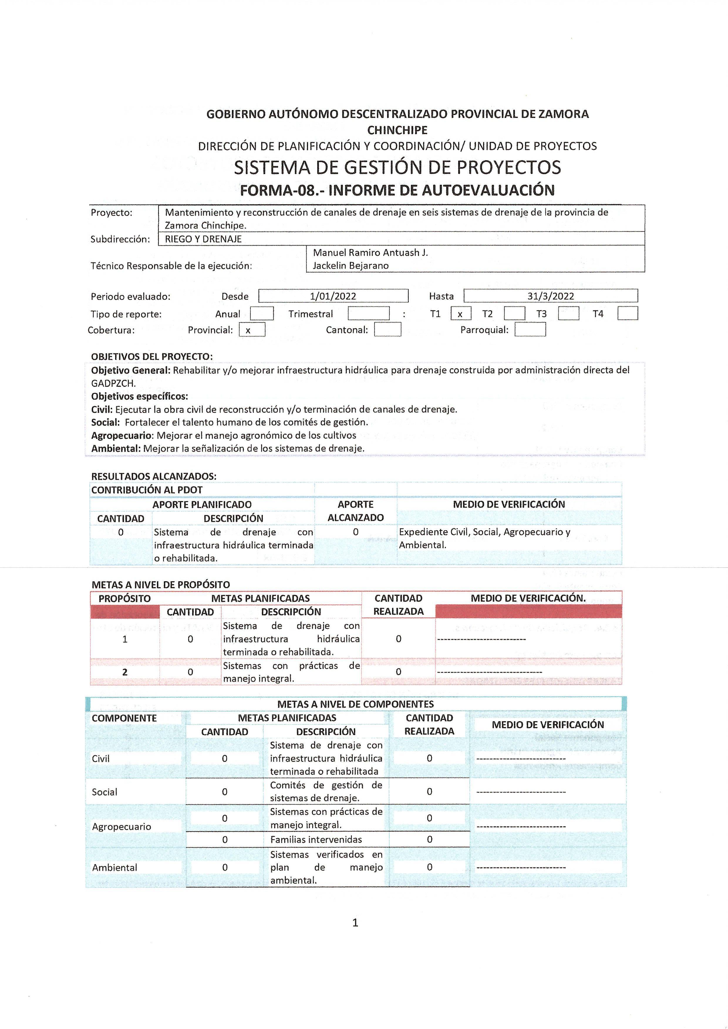 Cierre trimestre 1 - 2022 - 6 sistemas - Riego y drenaje