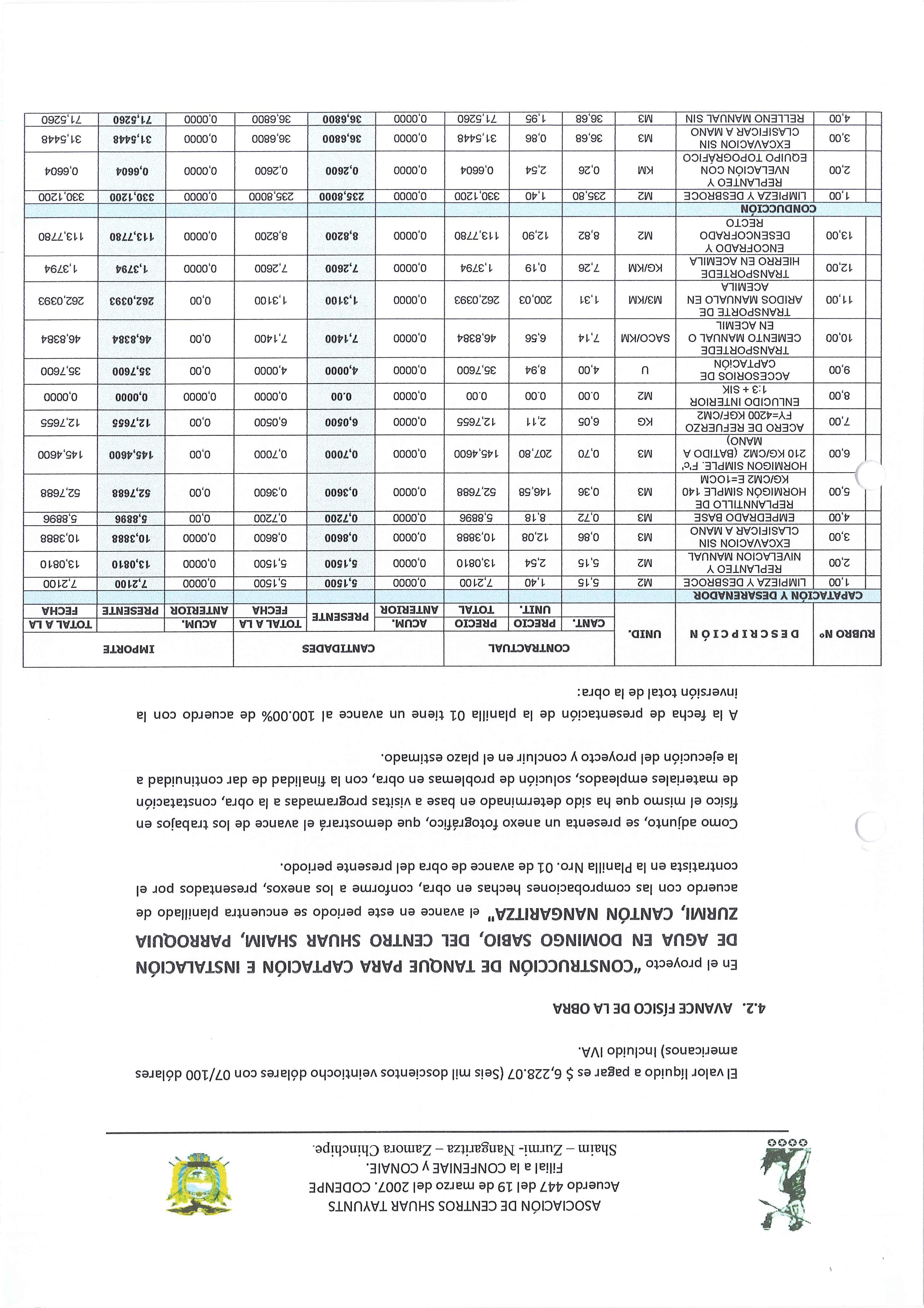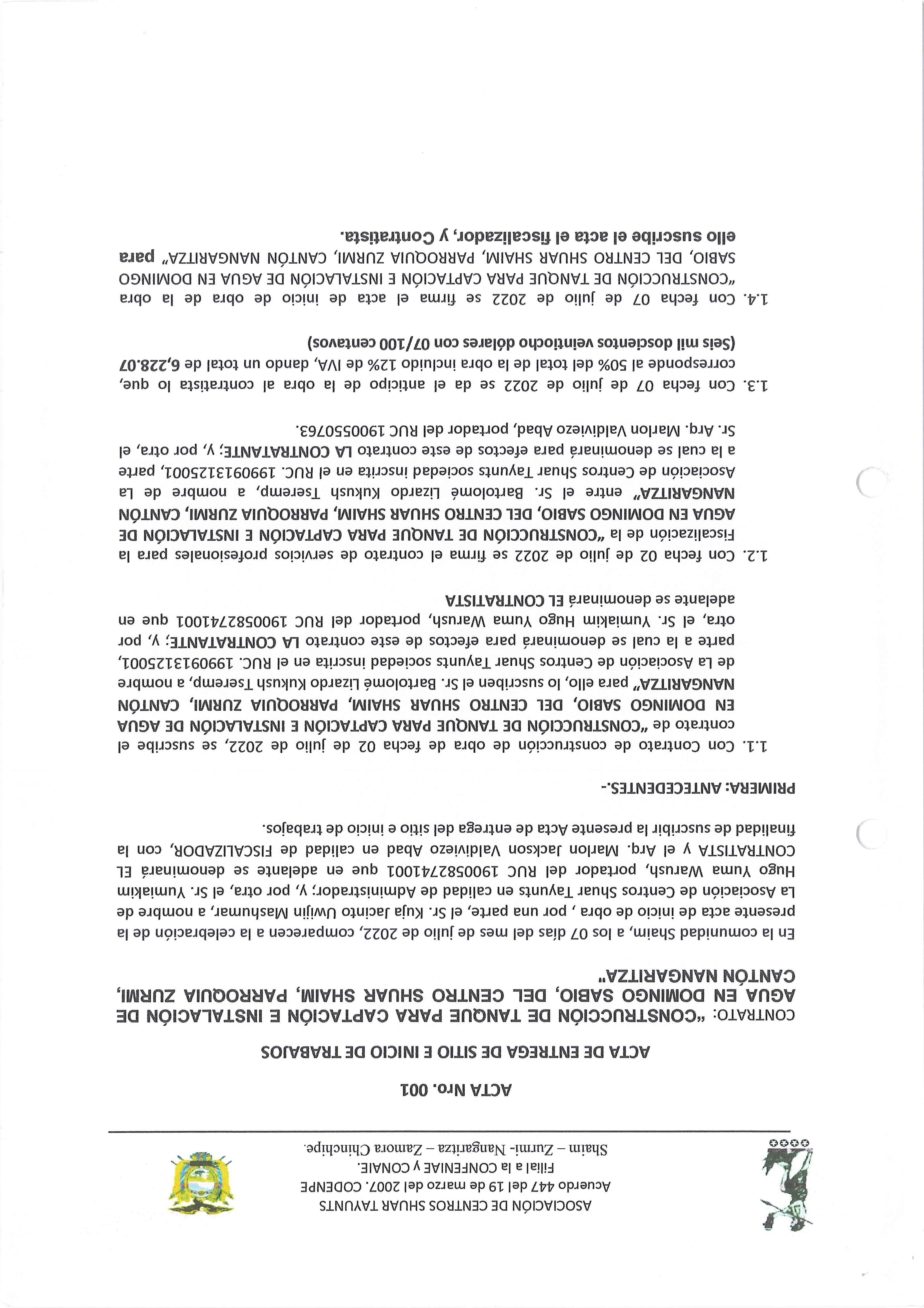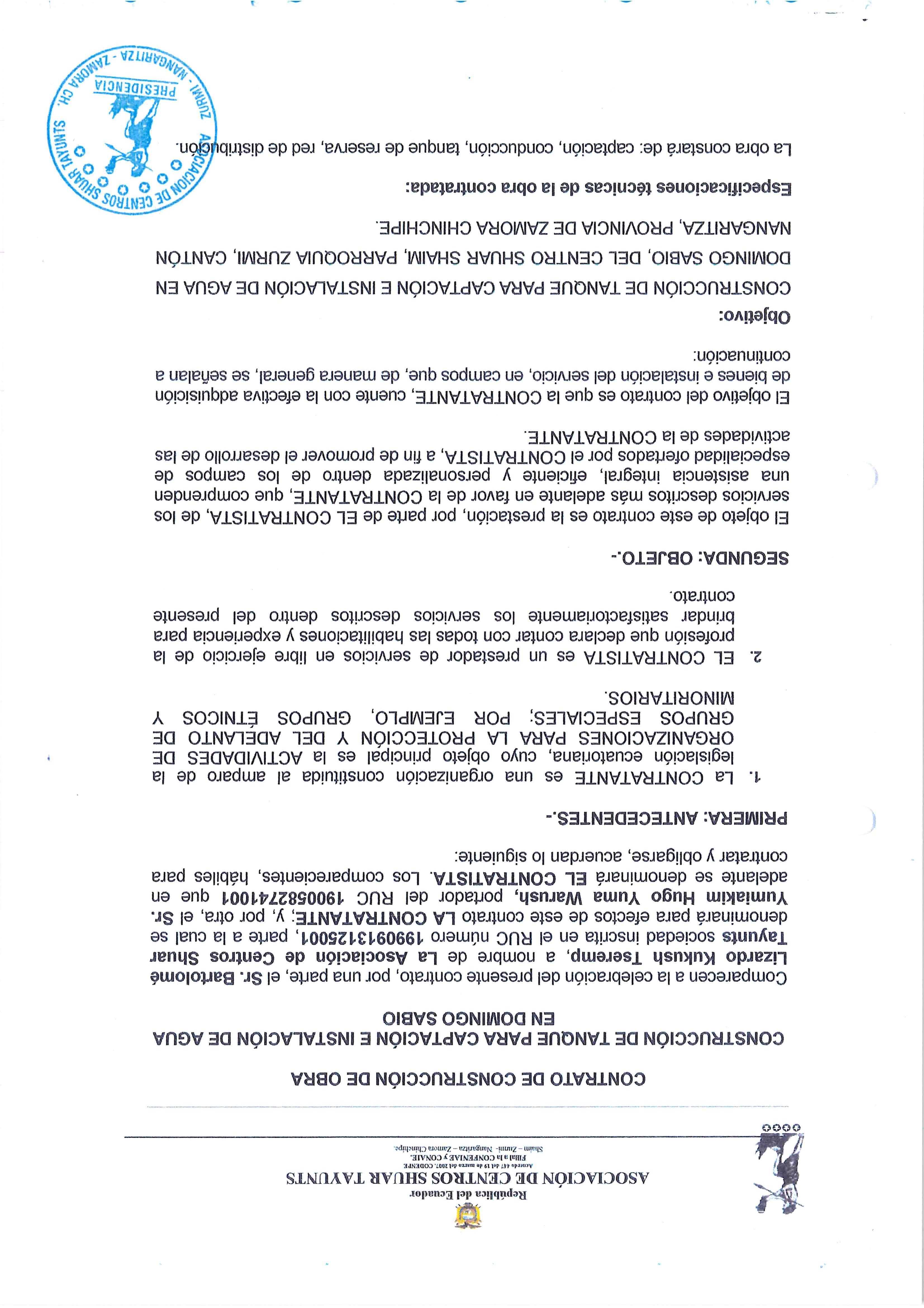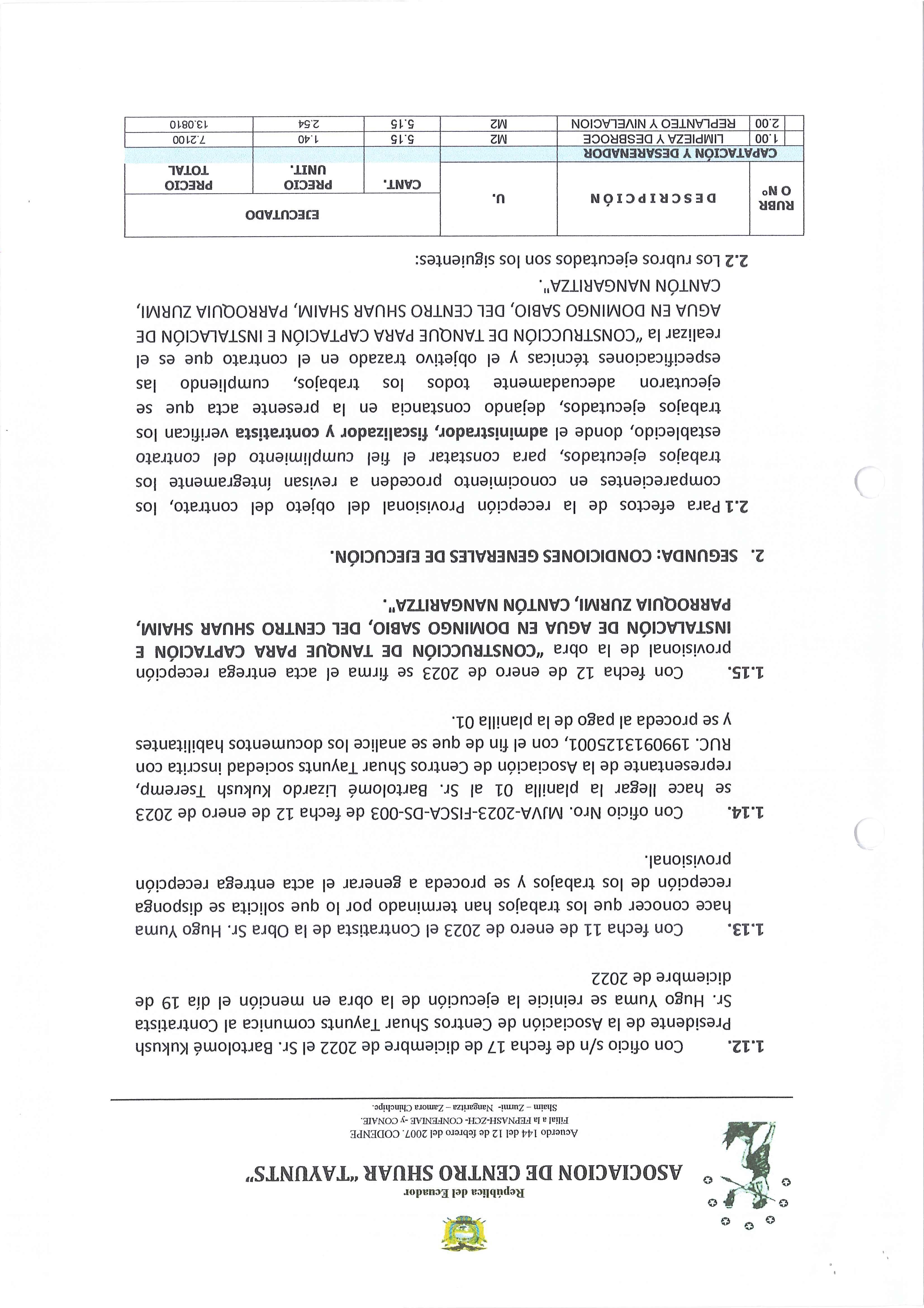 Expediente construccion tanques Domingo Sabio - Asociacion de Centros Shuar Tayunts