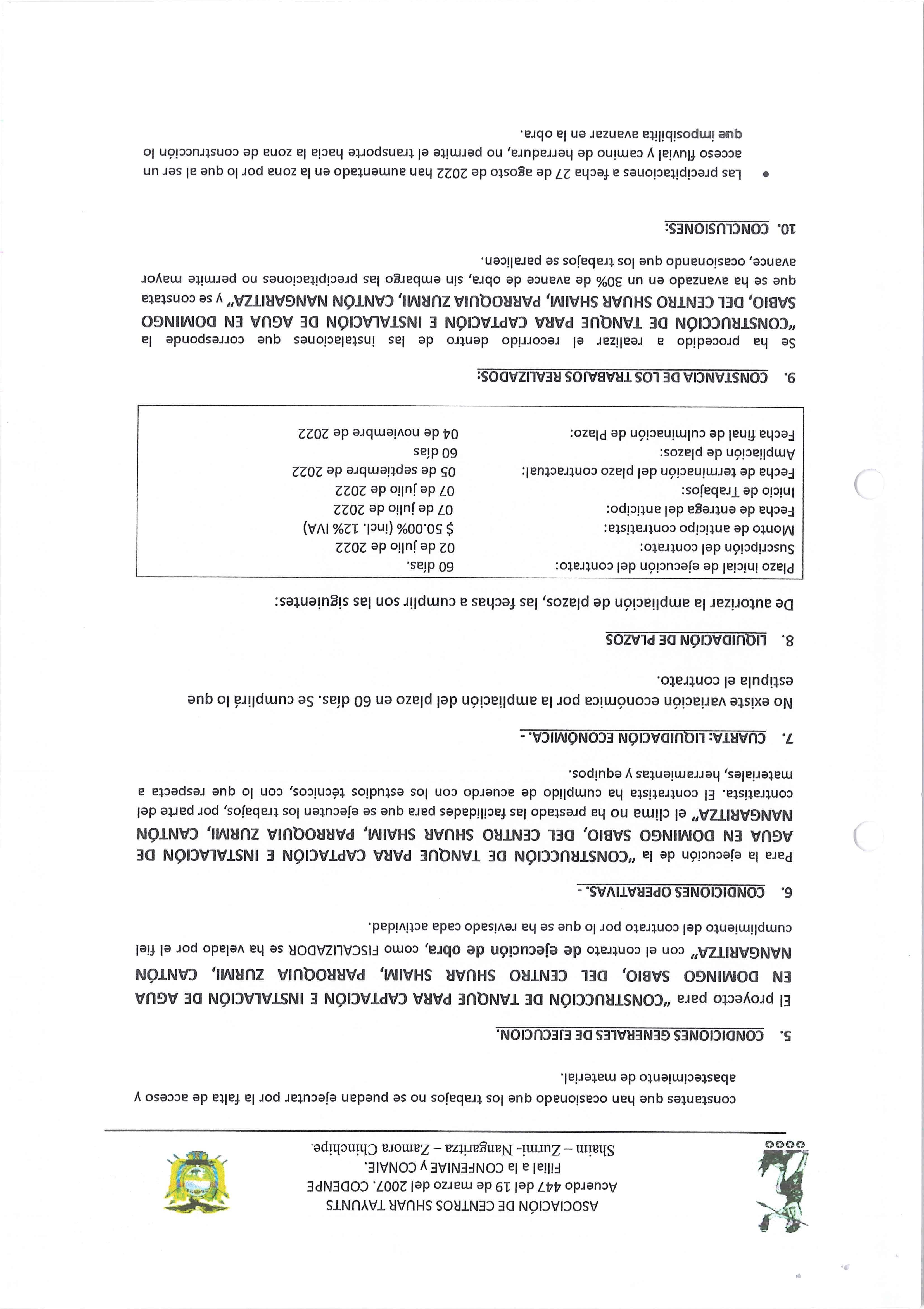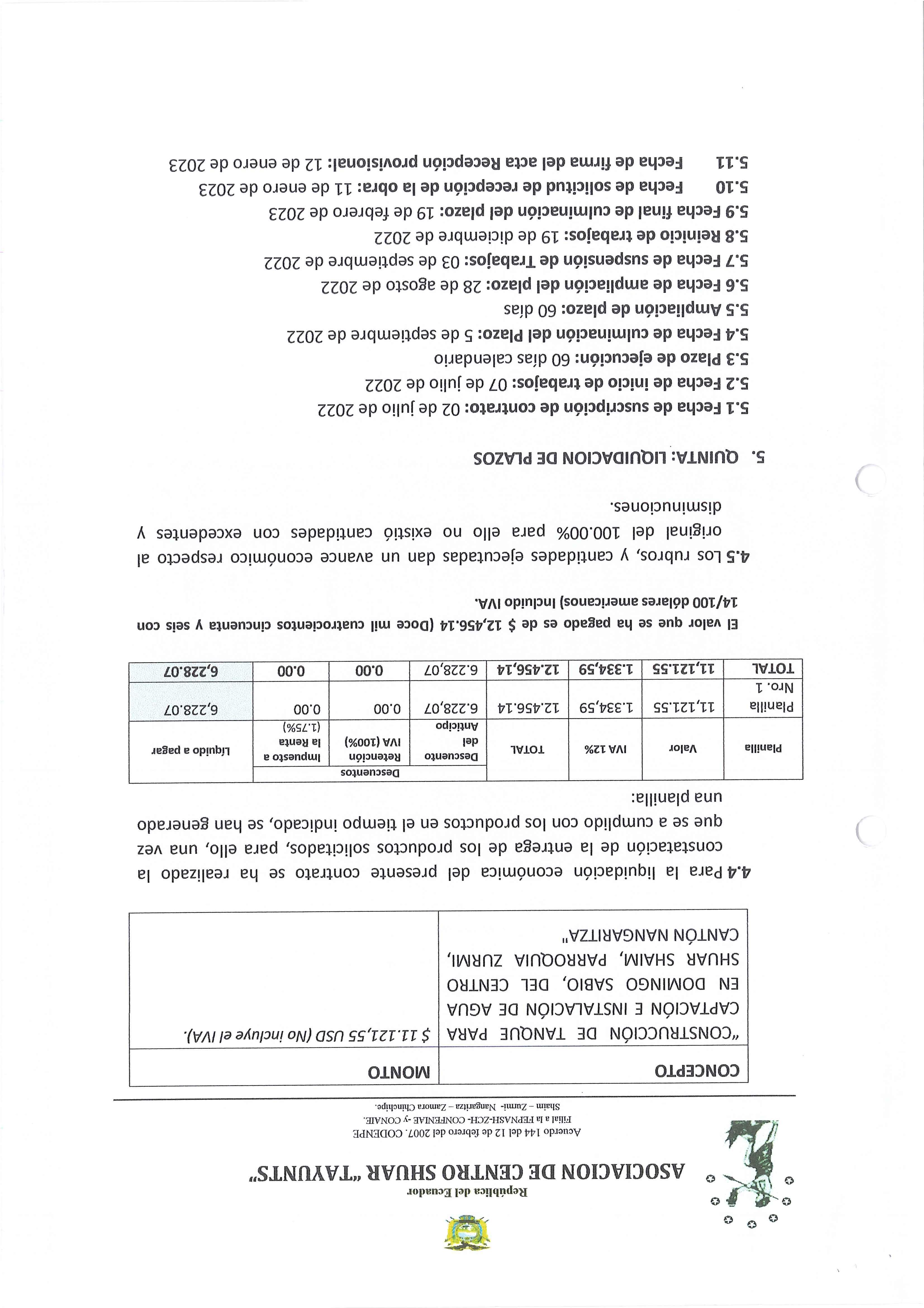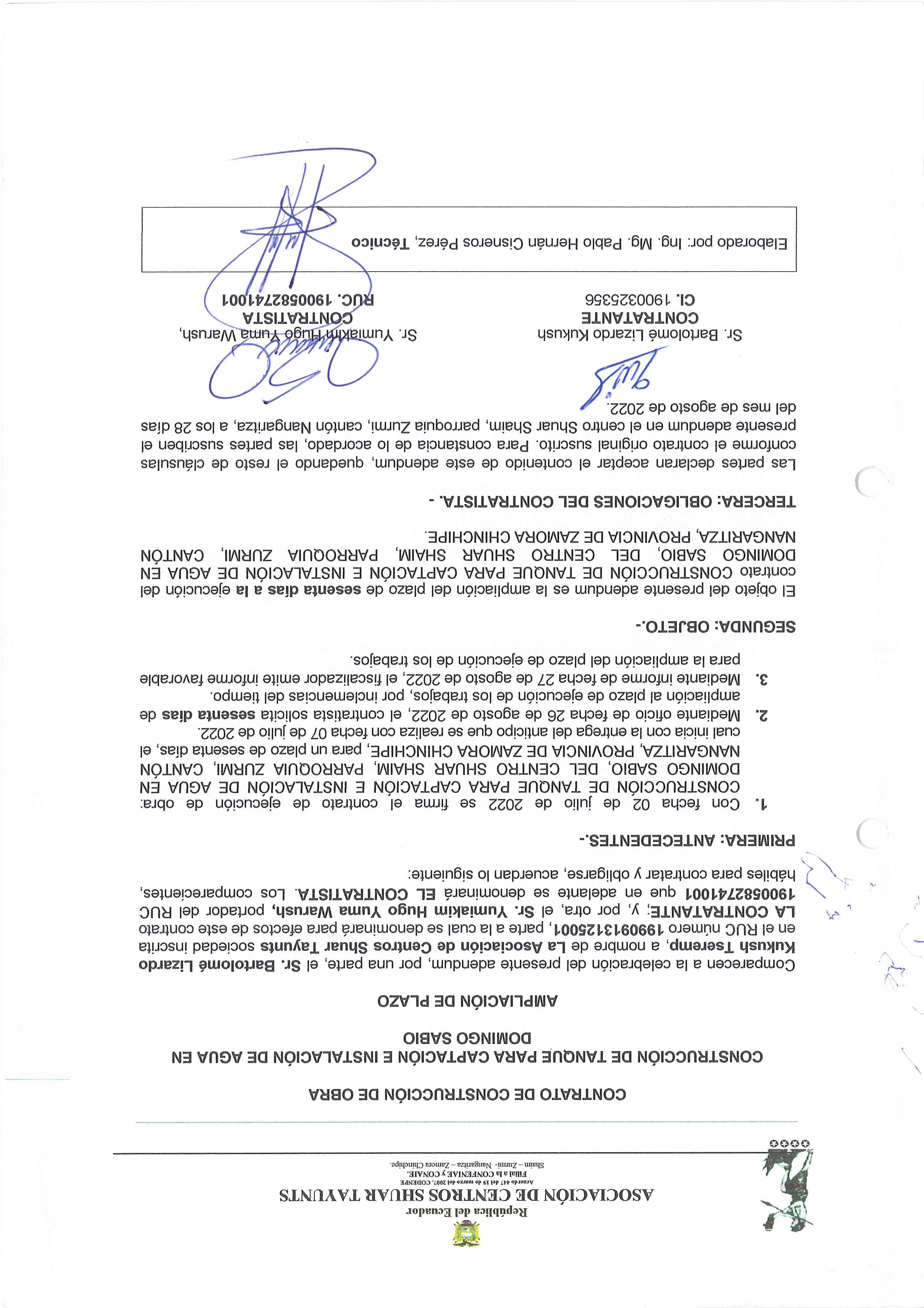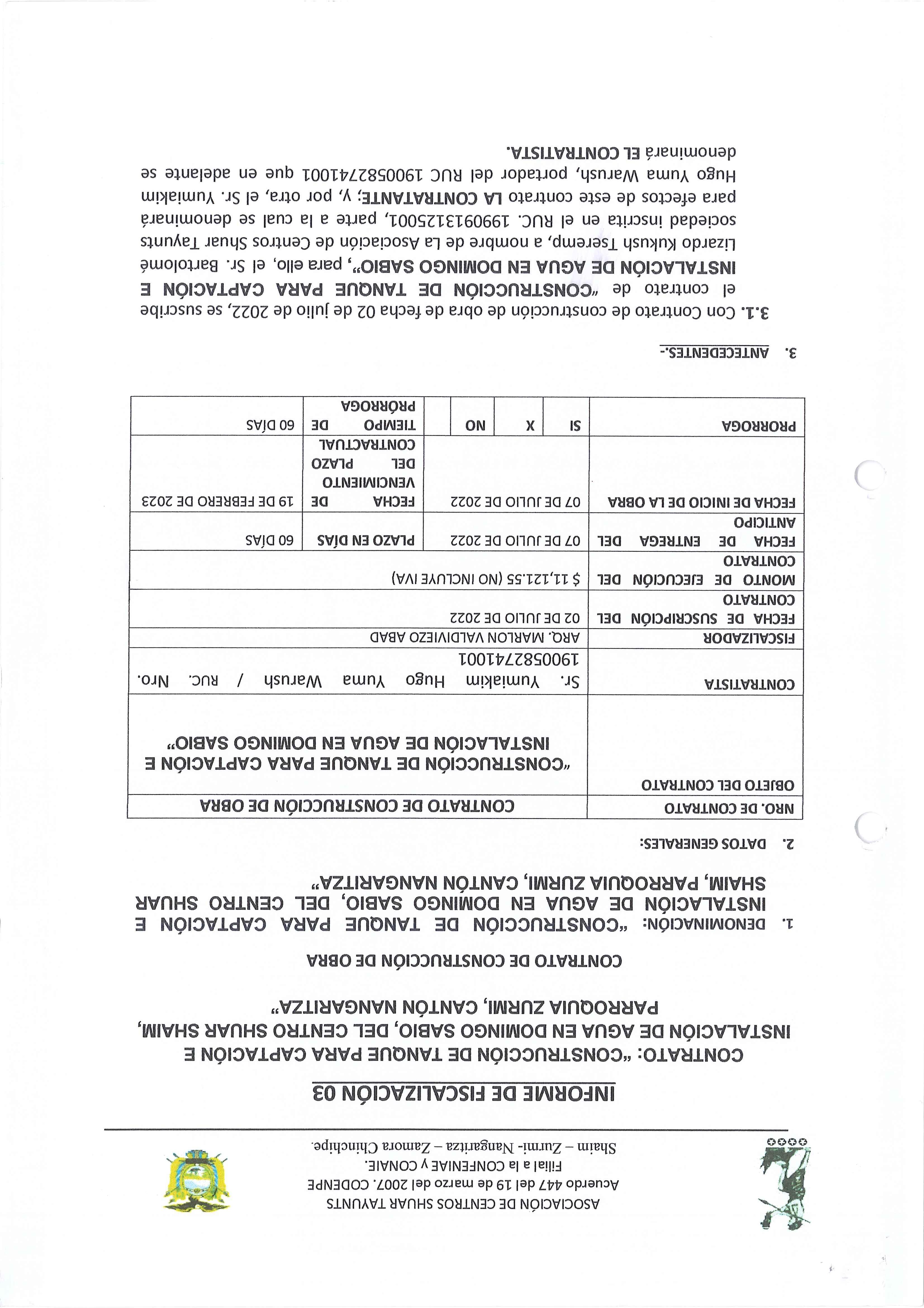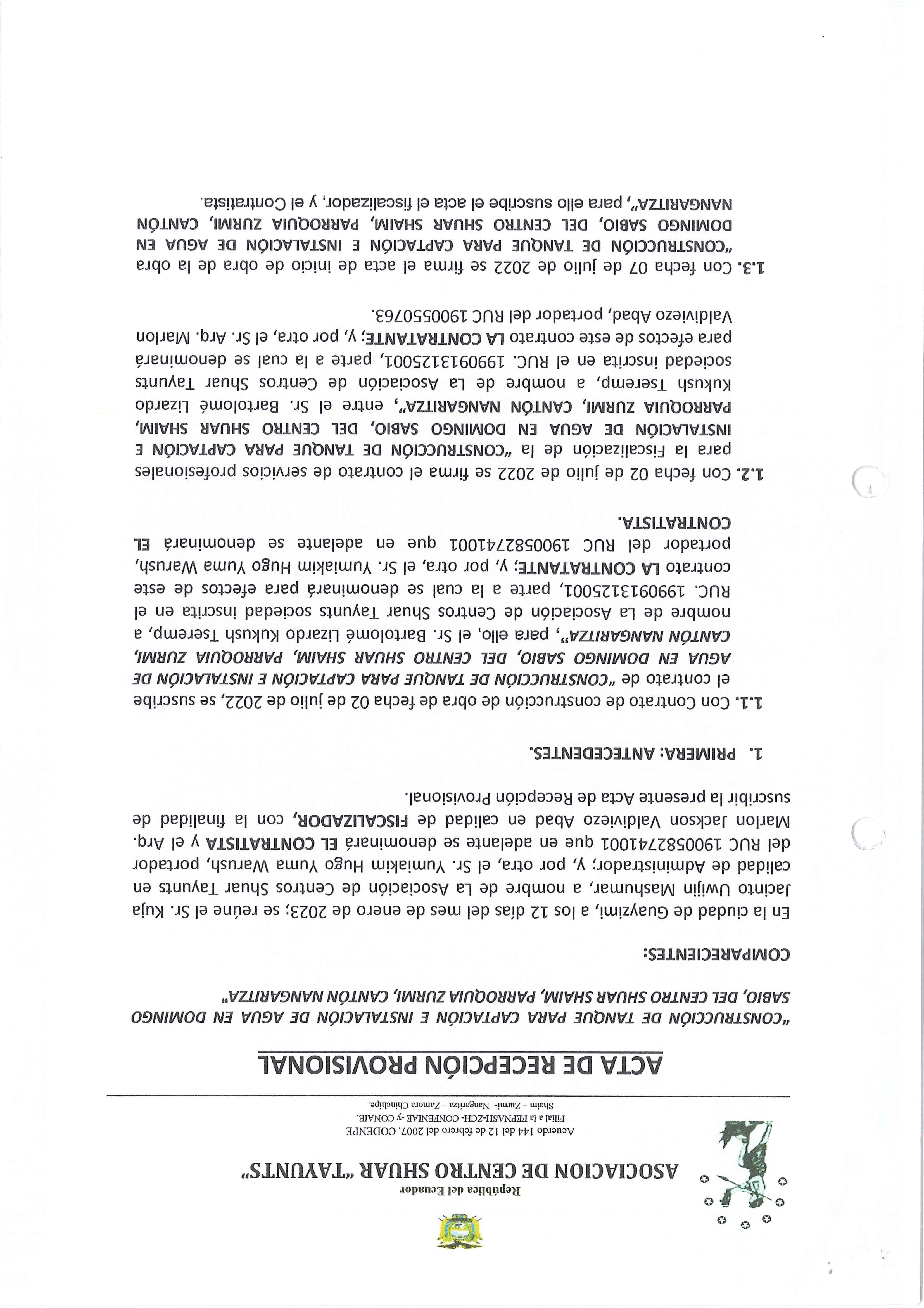 Expediente construccion tanques Domingo Sabio - Asociacion de Centros Shuar Tayunts