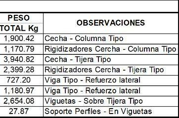 Para la determinación de cargas muertas se consideró un análisis de los pesos propios de los distintos componentes de la estructura, tomando en cuenta el material que los conforma y su volumen, el peso propio de las armaduras se establece de acuerdo a la sección de cada una de ellas tomando como base el peso específico del acero de 7800 kg/m³.
