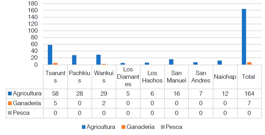 Nankais Nangaritza Zamora Chinchipe Ecuador parroquia (171), el 95.91 % (164 hogares) se dedican a la agricultura y el 4.09 % (7 hogares) se dedican a la ganadería.