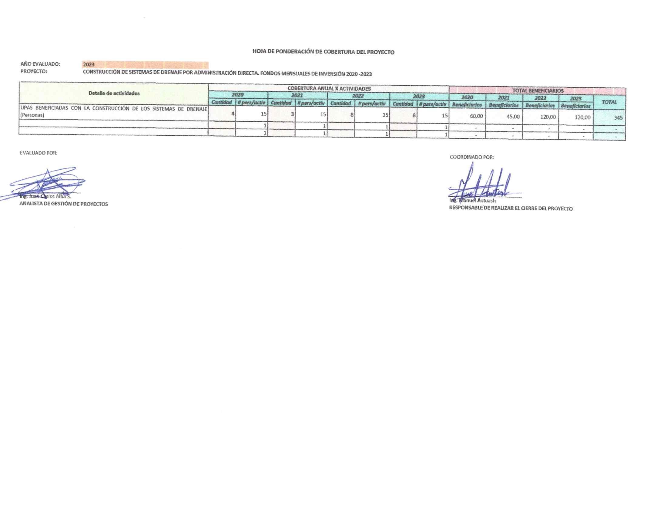 Sistemas de drenajes 8 Sistemas de drenajes 2 Actas de entrega del sistema de Drenaje Manchinatza Alto y Guaguayme Alto.