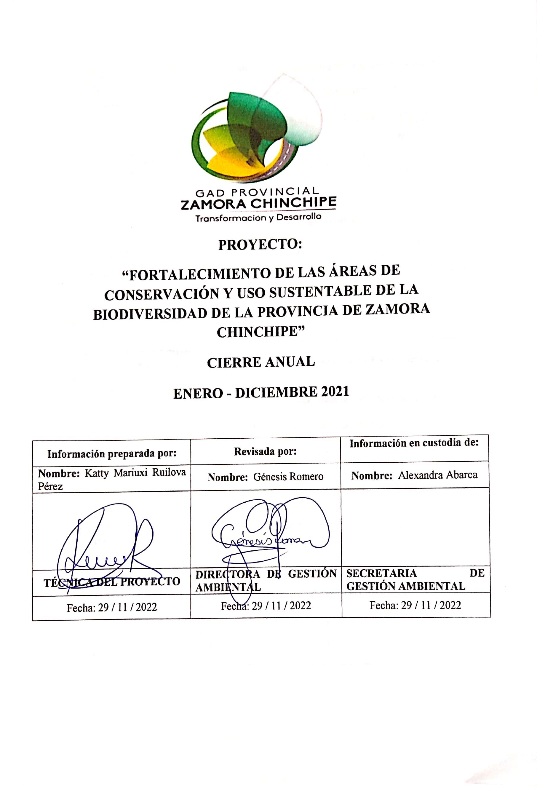Cierre anual 2021 proyecto fortalecimiento de las áreas de conservación y uso sustentable de bio