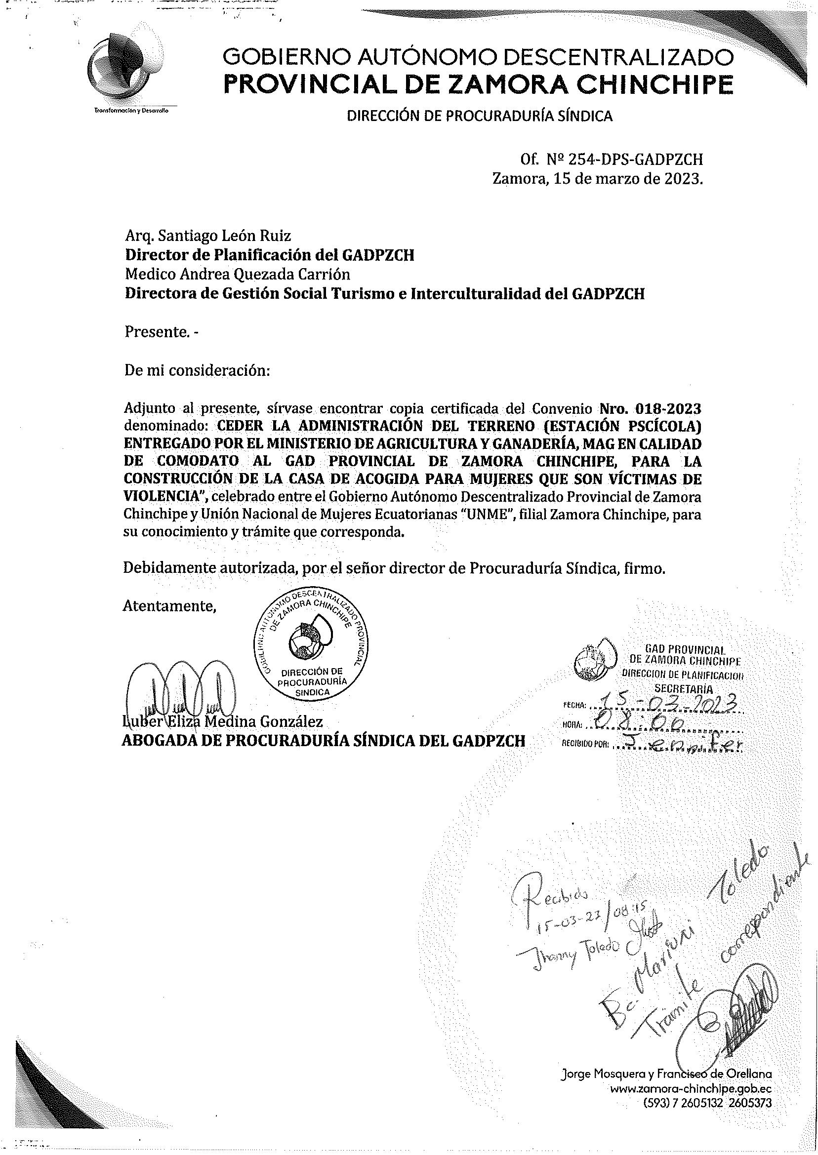 Cv. 018-2023, Ceder Adm. Terreno C. Acog. Mujer by UNIDAD DE PROYECTOS GADPZCH - Issuu