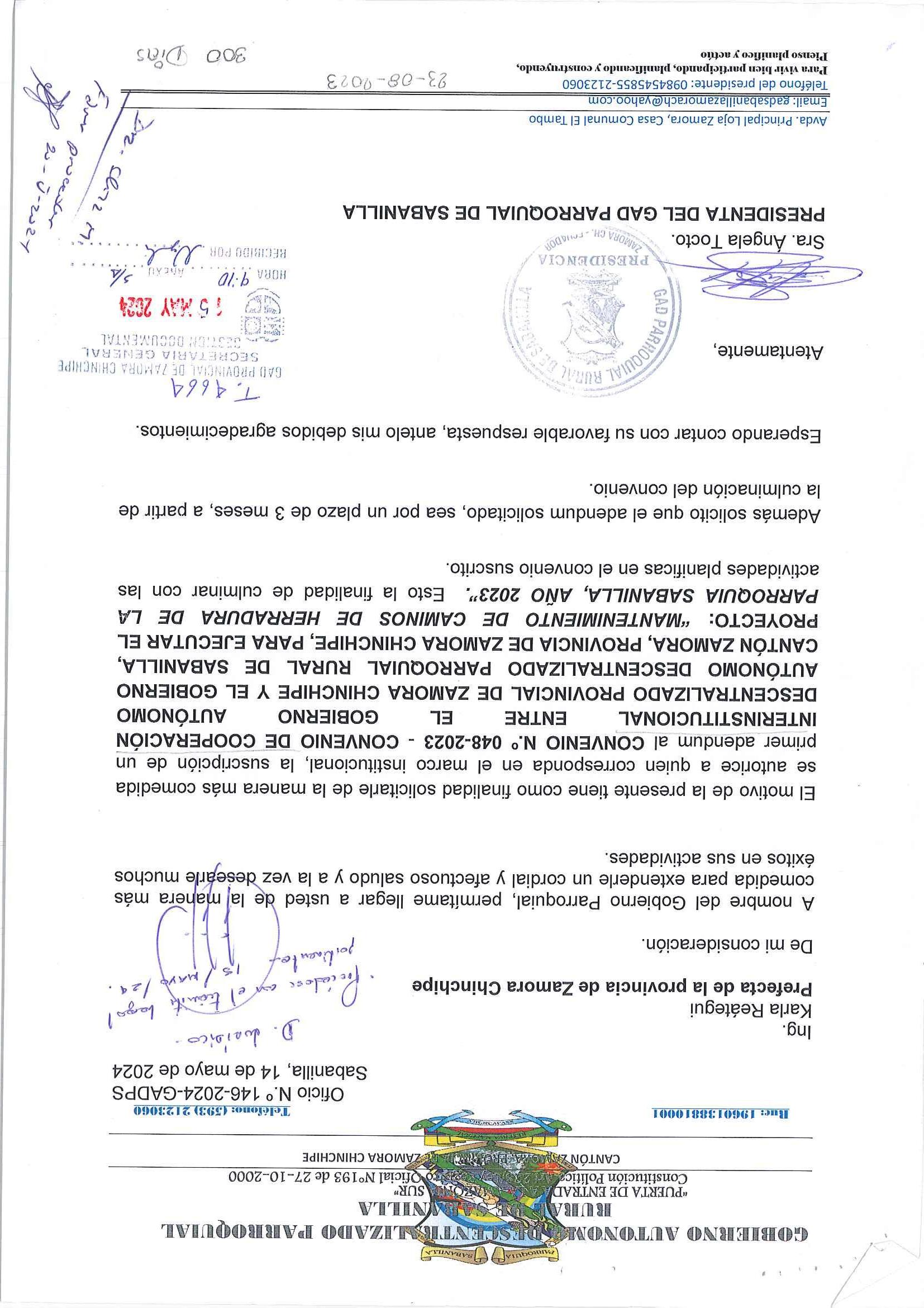 ADENDUM AL CONVENIO MANTENIMIENTO DE CAMINOS DE HERRADURA DE LA PARROQUIA SABANILLA. año 2023
