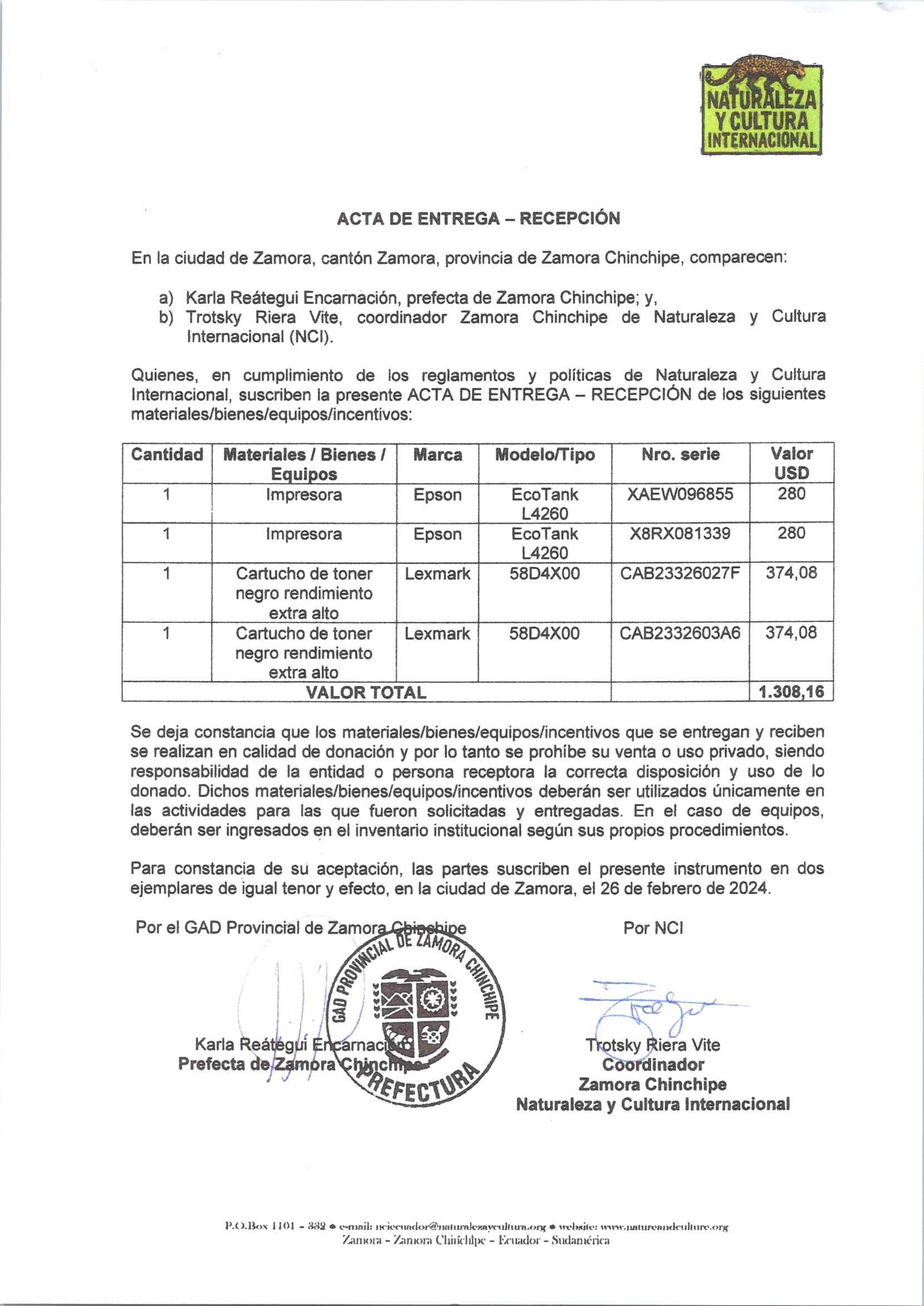 DONACIÓN DE DOS IMPRESORAS