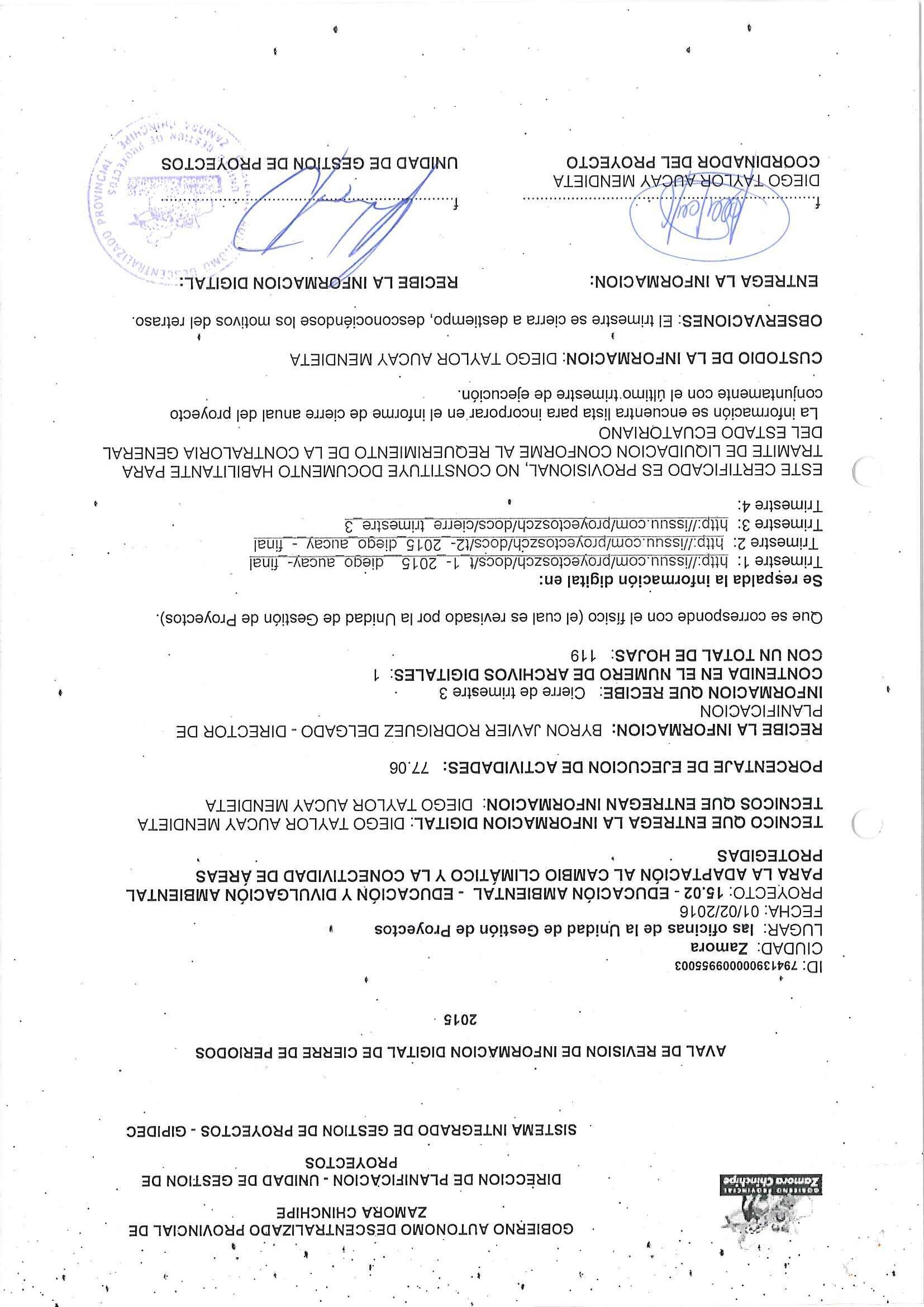 escaneado de cierre de proy 2015 impac ambientales by UNIDAD DE PROYECTOS GADPZCH - Issuu
