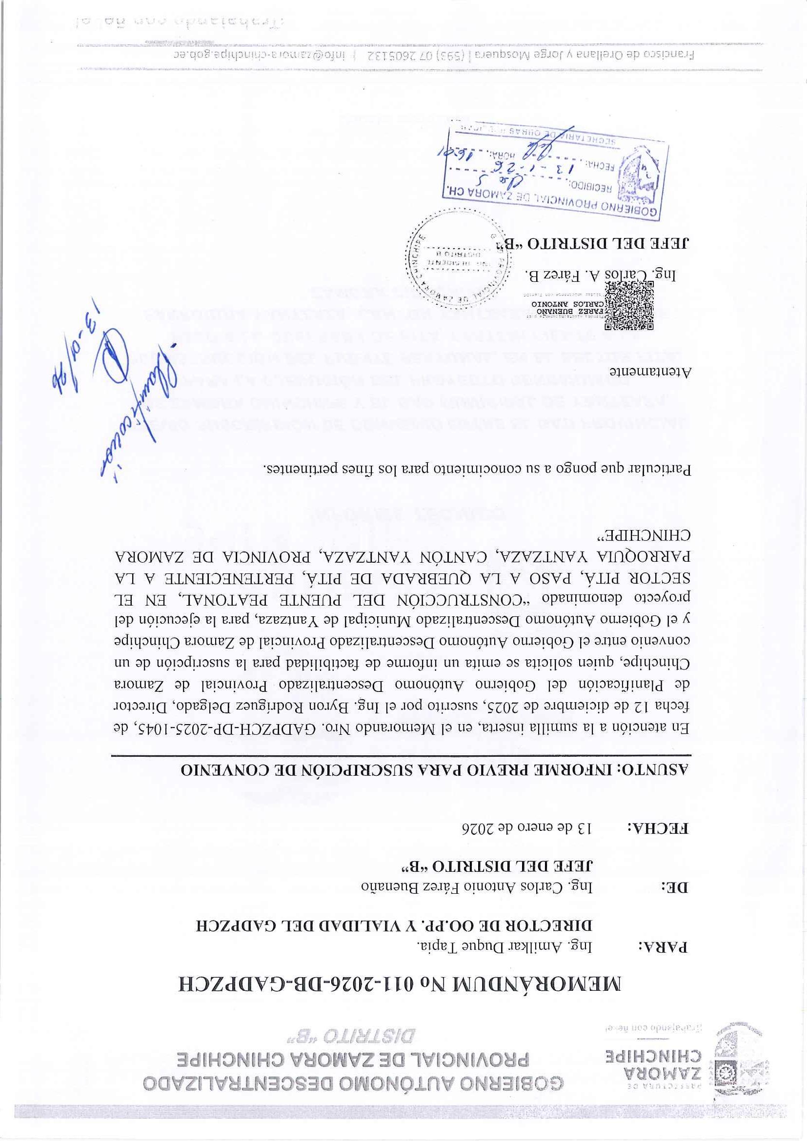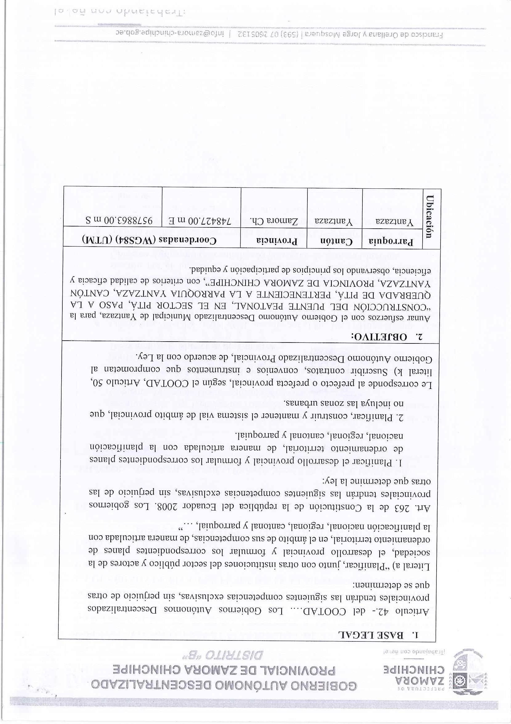En calidad de representante legal del Gobierno Autónomo Descentralizado Municipal de Yantzaza, hago conocer que el Proyecto: “CONSTRUCCION DEL PUENTE PEATONAL EN EL SECTOR PITA, PARROQUIA YANTZAZA, PROVINCIA DE ZAMORA CHINCHIPE”; será ejecutado por el GAD Municipal de Yantzaza; toda vez que se cuenta con la asignación presupuestaria e incorporada al PAC institucional.