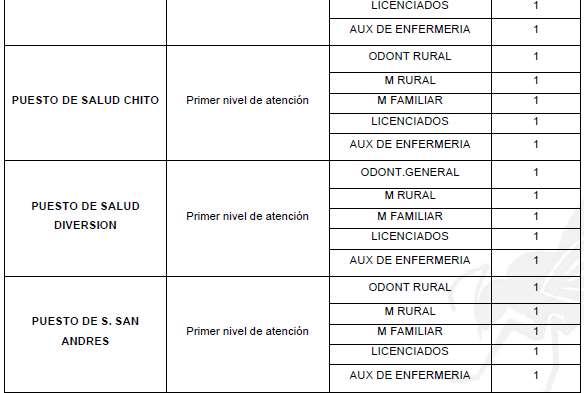 Primer Nivel de Atención: Médico General y/o personal auxiliar, y otros profesionales