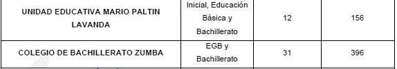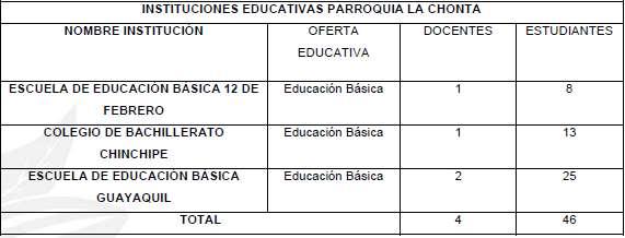 Tabla 10Instituciones Educativas de la Parroquia san Chito