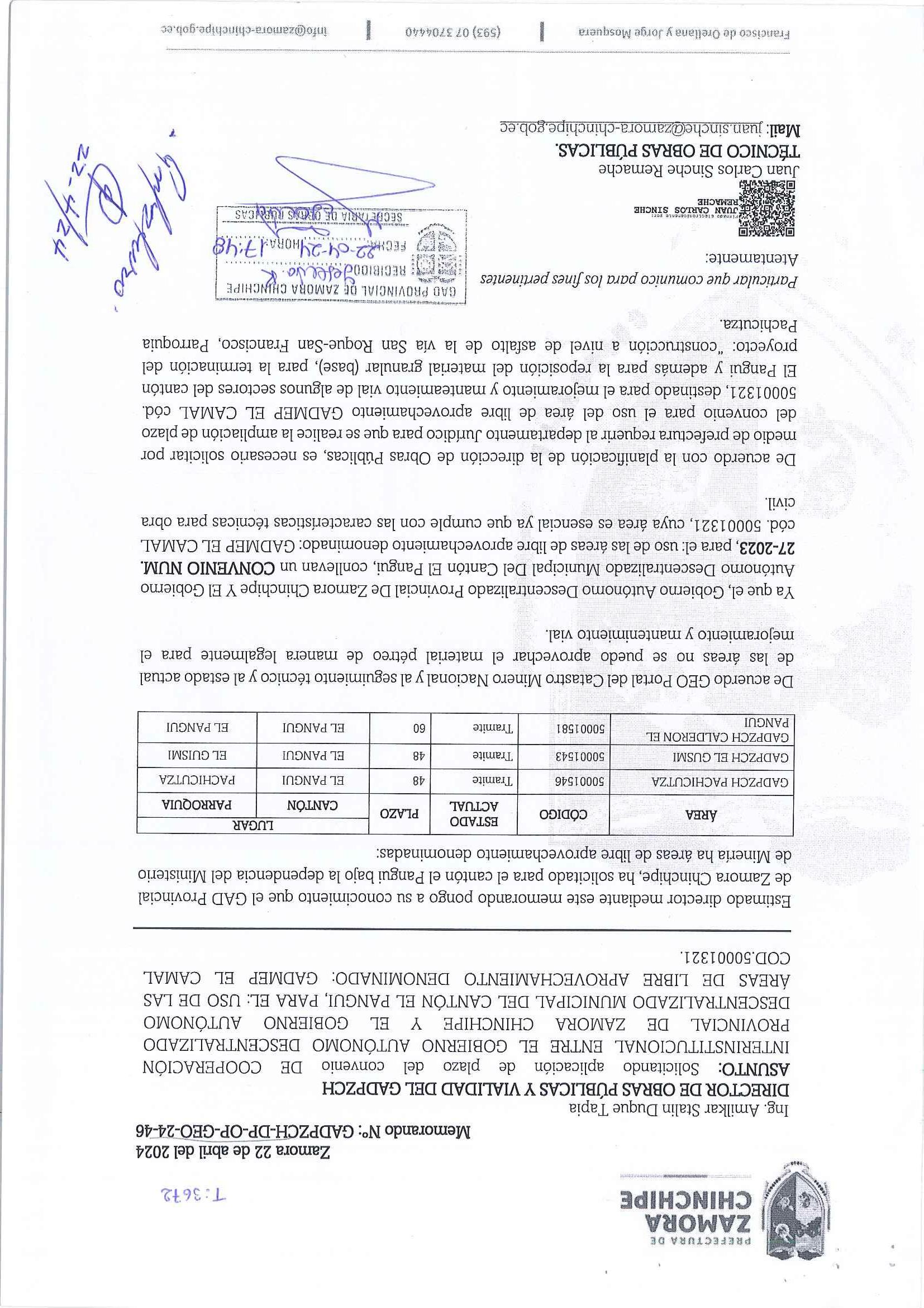 SO DE LAS AREAS DE LIBRE APROVECHAMIENTO DENOMINADO: GADMED EL CAMAL COD. 50001321