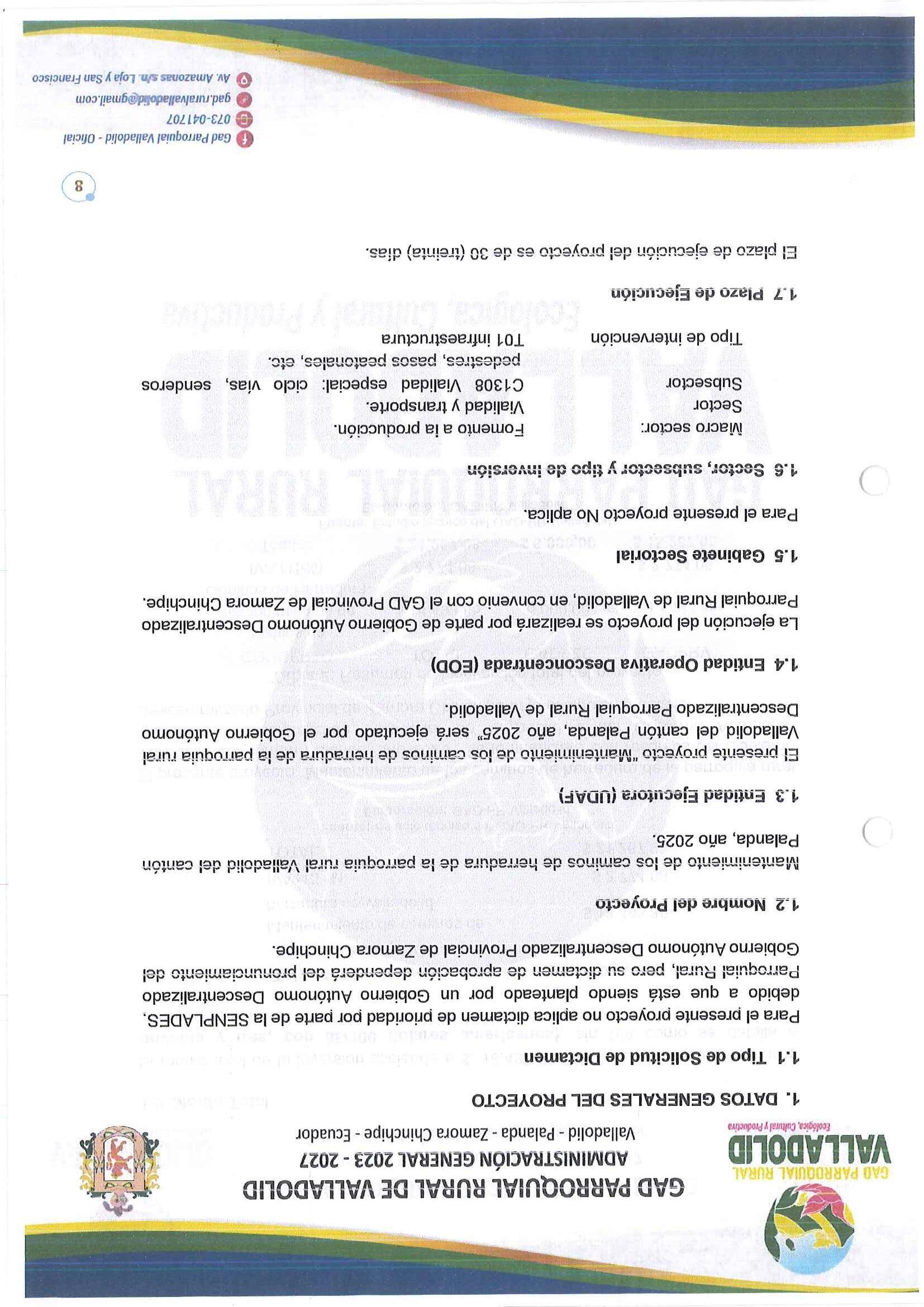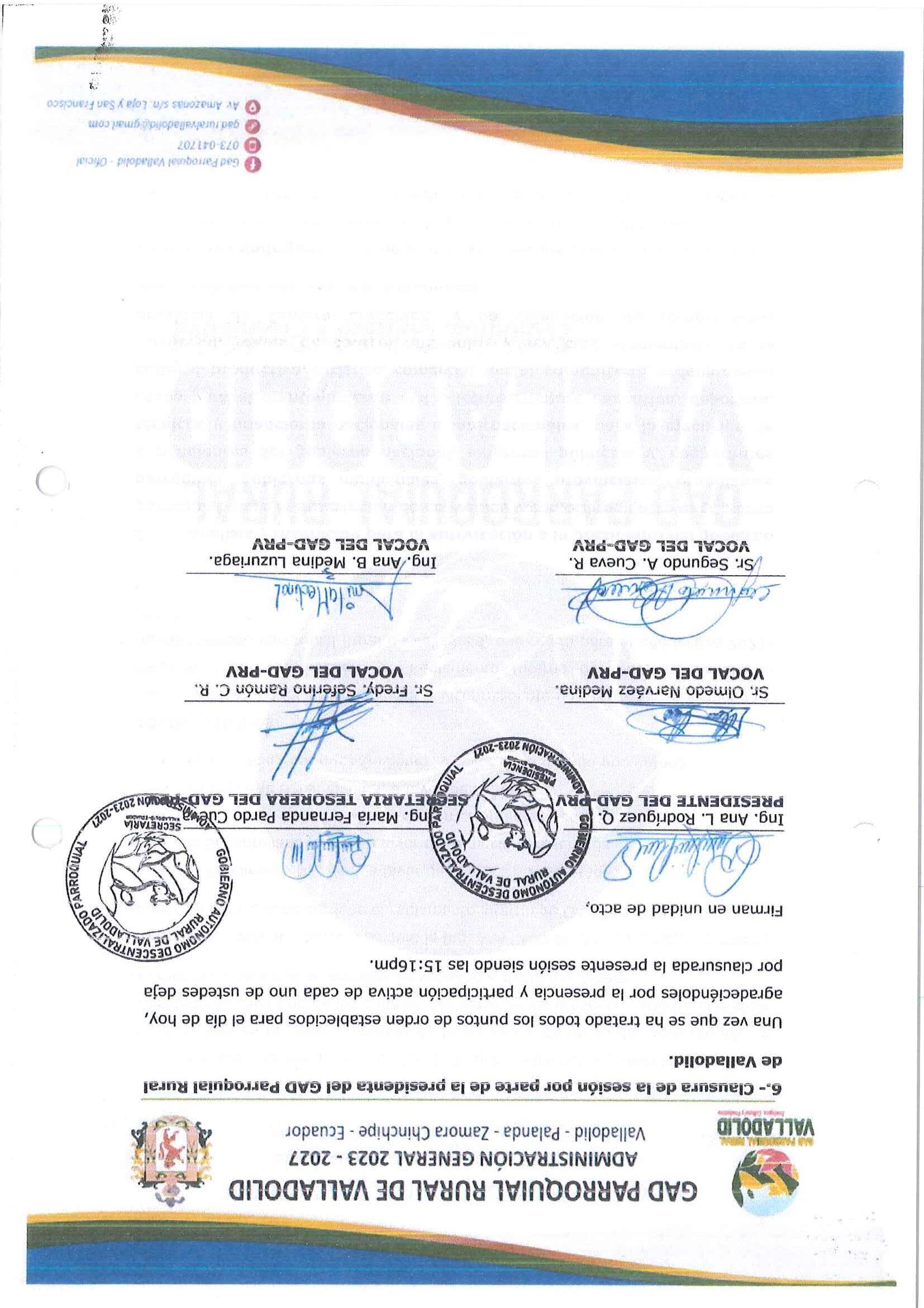 Con fecha 10 de junio de 2025, la Ing. Ana Lucia Rodríguez Quiñonez, presidente del GAD Parroquial Rural Valladolid, mediante Oficio. Nro. 333-GADPRV-2025, solicita la firma de un conveniointerinstitucional,paraelmantenimientodecaminosdeherradura,paraelaño2025.
