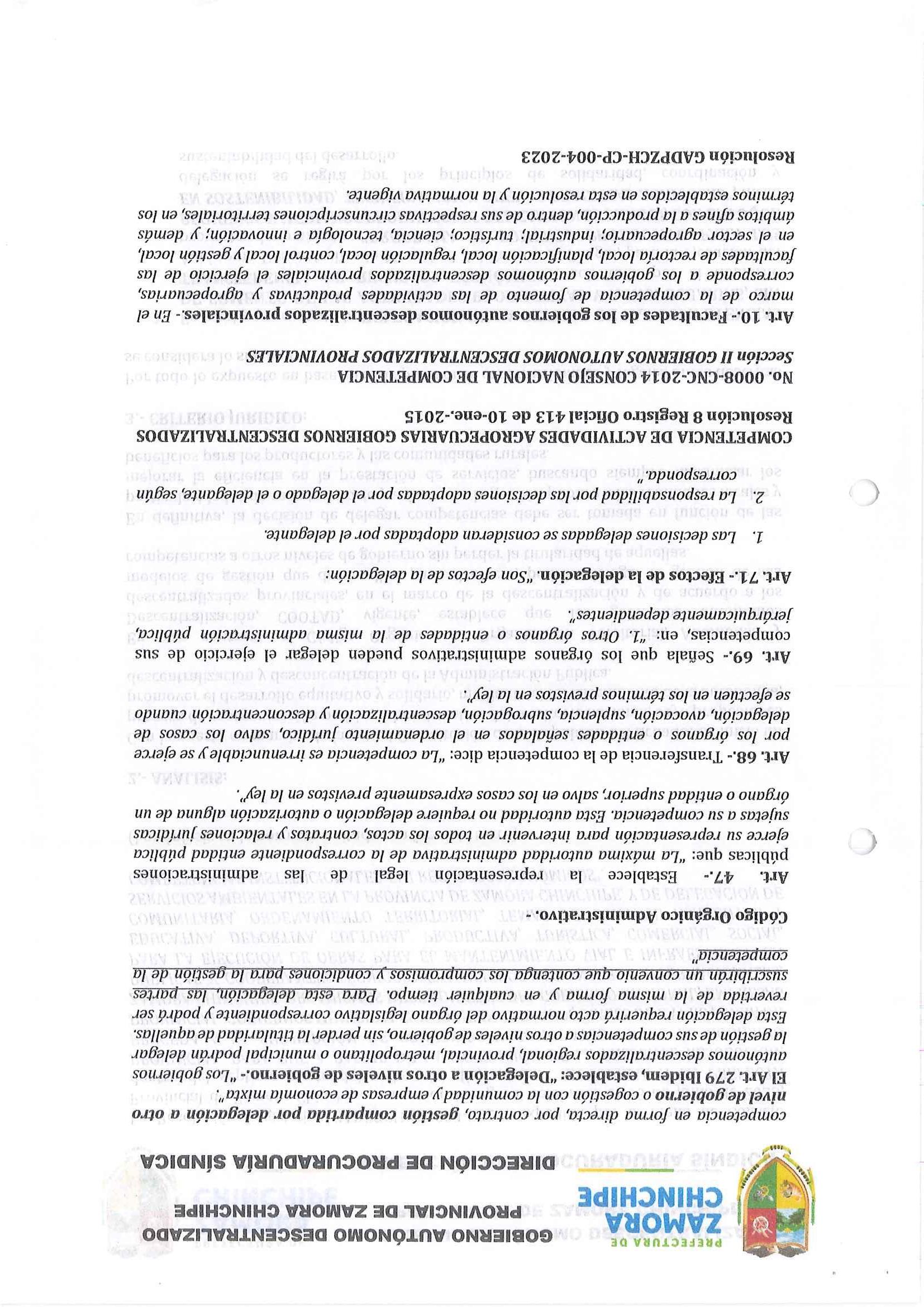 MedianteOficioN°040-DPS-GADPZCH,defecha24/01/2025,suscritoporelDr.Víctor HugoHidalgoMazadirectordeprocuraduríaGADPZCH,elmismoquesolicitainformede factibilidadparalafirmadeconveniode delegacióndecompetencias sintransferenciade recursoseconómicosparaejecutarel proyectodenominado "PROGRAMADEFOMENTO PRODUCTIVO PARA LOS PEQUEÑOS Y MEDIANOS PRODUCTORES DE EL CANTÓN EL PANGUI: CON ENFOQUE EN SOSTENIBILIDAD, TECNIFICACIÓN Y BUENAS PRÁCTICAS AGRÍCOLAS",solicitoaladirecciónbajoasucargo,sedigneelaborarelinformede factibilidad de conformidad a lo establecido en el numeral 4 de art, 79 de la ORDENAZAPARALAAPLICACIÓNDELASNORMASDECONTROLINTERNOEN TODASLASÁREASADMINISTRATIVASYPROCESOSDESCONCERTADOSDELGAD PROVINCIAL.