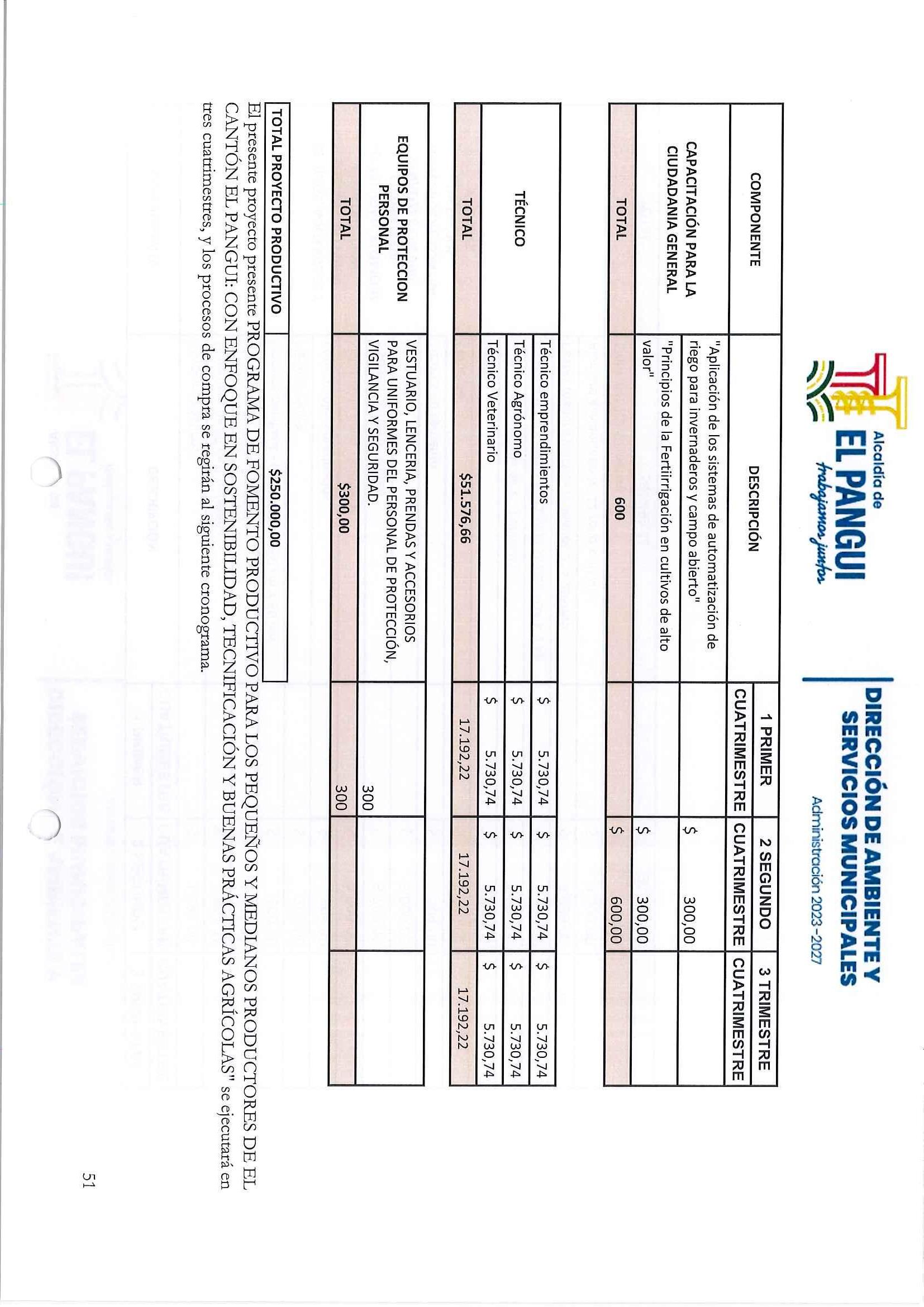DeacuerdoalapresentacióndelapropuestaporpartedelGadelPangui,damosaconocer que en la institución se brinda asistencia técnica a todo el aparato productivo que se encuentre dentro de la provincia y de conformidad a lo establecido en el proyecto se predisponenintervenirenlaproduccióndelasiguientemanera: