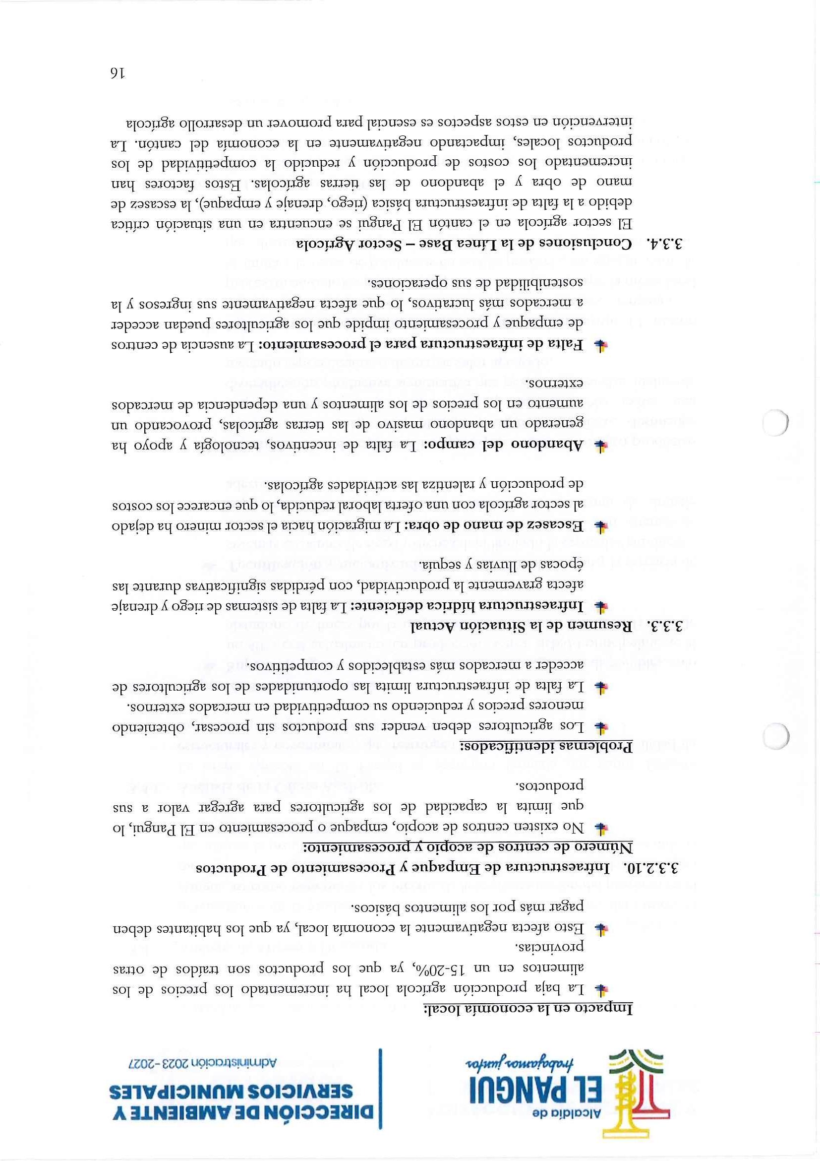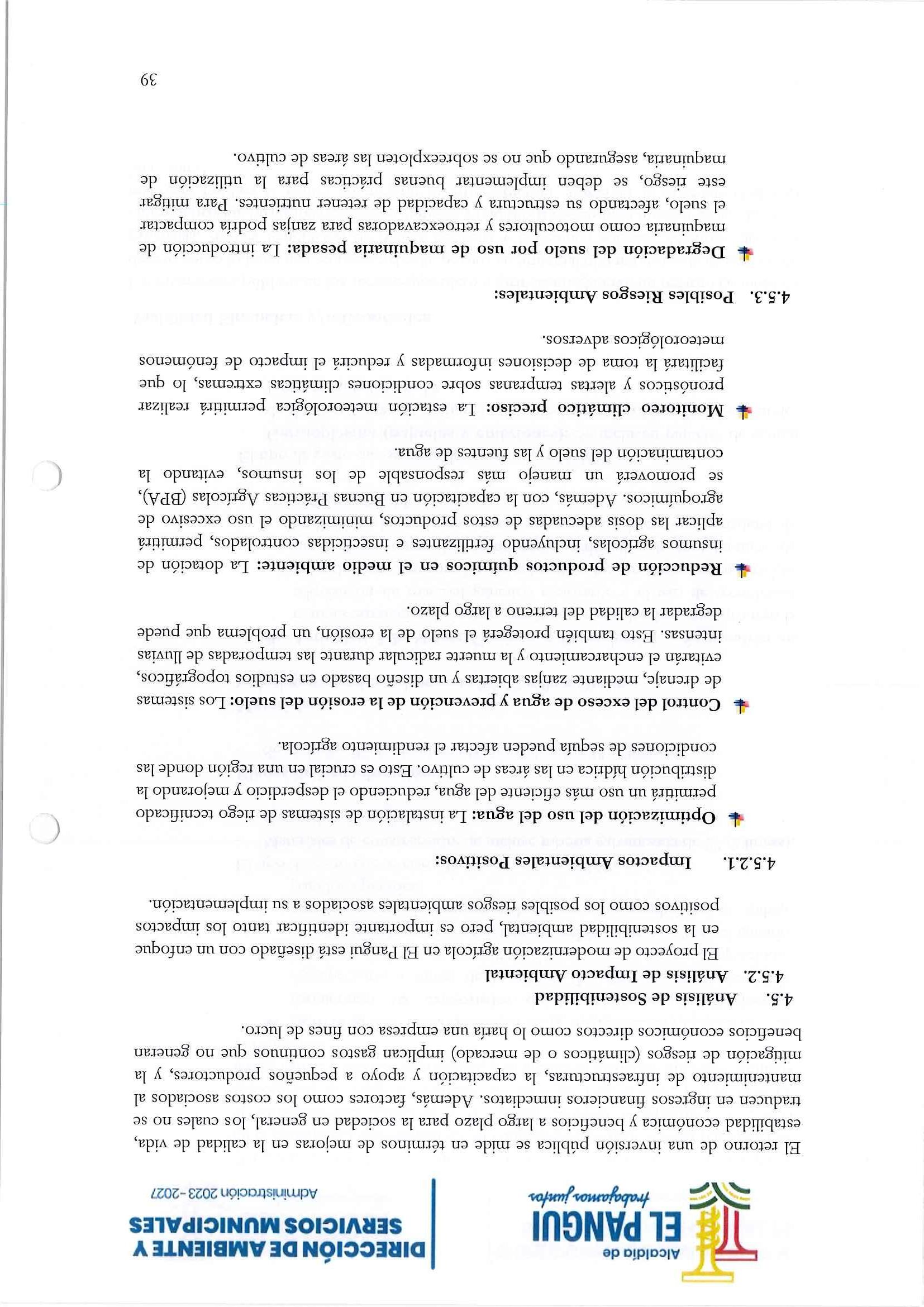 Desde el punto de vista técnico y operativo se analizó el proyecto denominado, "PROGRAMA DE FOMENTO PRODUCTIVO PARA LOS PEQUEÑOS Y MEDIANOS PRODUCTORES DE EL CANTÓN EL PANGUI: CON ENFOQUE EN SOSTENIBILIDAD, TECNIFICACIÓNYBUENASPRÁCTICASAGRÍCOLAS",presentadoporlaparteinteresada; lafactibilidaddedelegarel100%delascompetenciassolicitadasporpartedelGobierno Autónomo,selarealizaradeacuerdoalasnecesidadesrequirentesdelaparatoproductivo yencoordinacióninterinstitucional,confinesdesostenerresultadoshalagadoresalos productores.