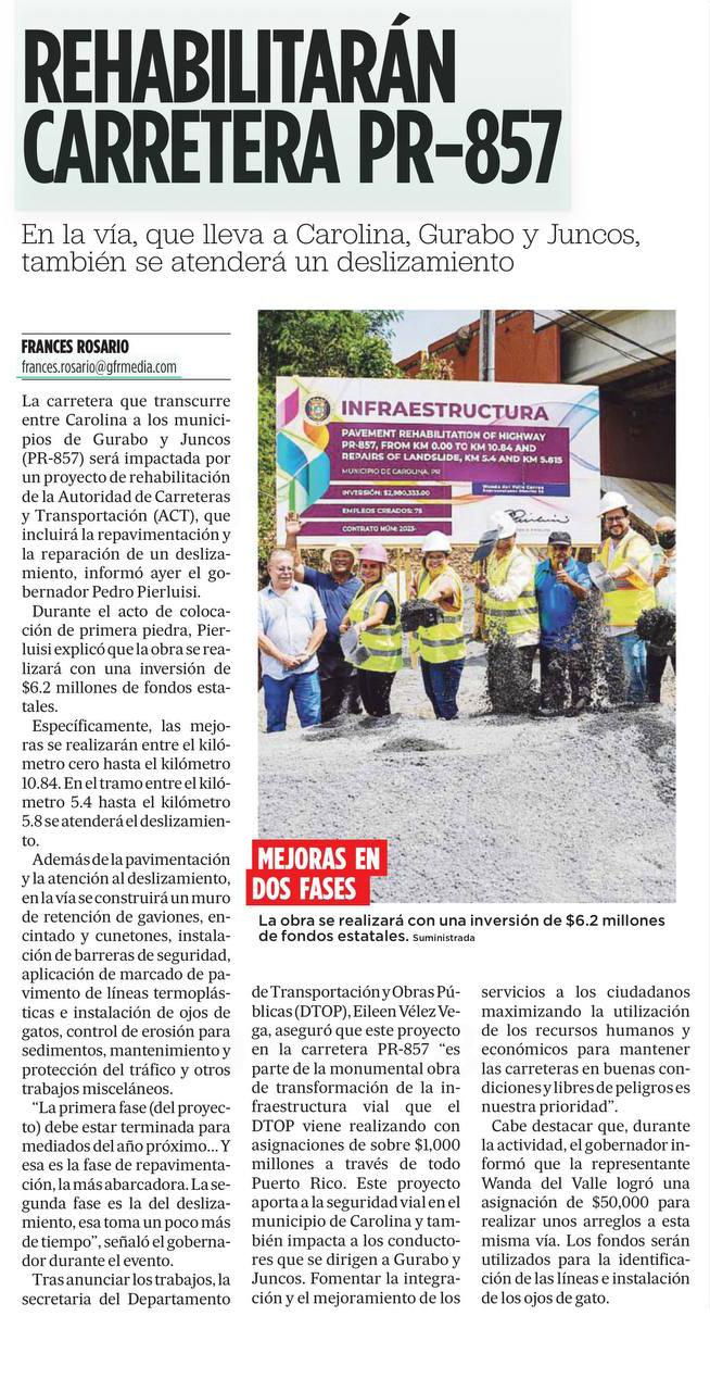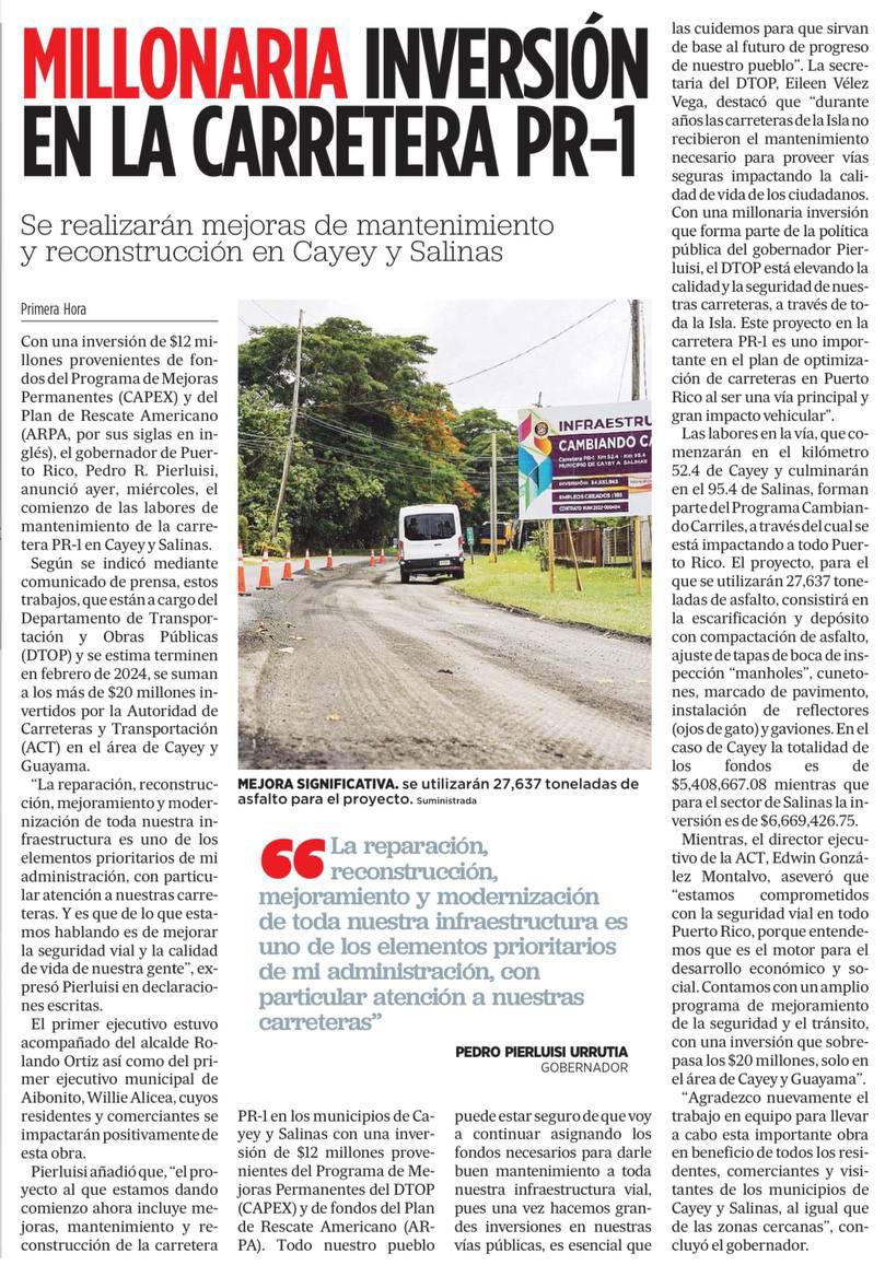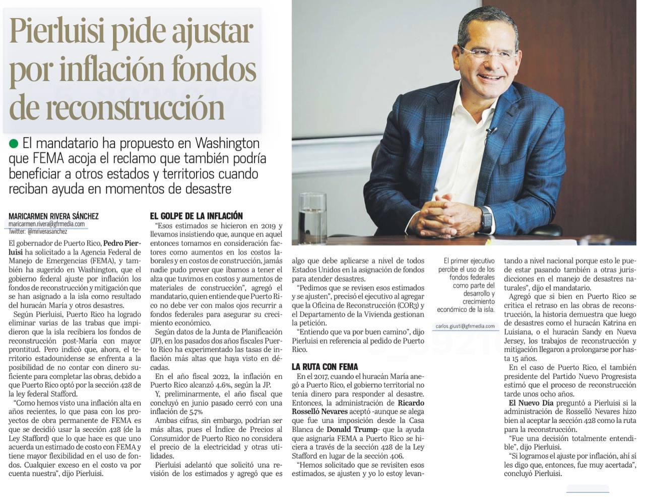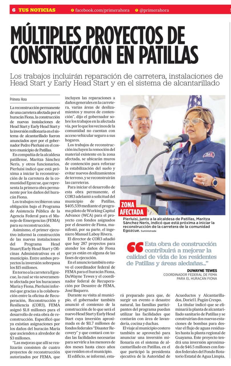 proyectos permanentes, incluyendo varios grandes que suman $20 millones. El Gobierno de Puerto Rico tiene un compromiso grande con nuestra gente y colaborando con FEMA durante este 2024 vamos a continuar adelantando la reconstrucción por toda la Isla” indicó el gobernador Pedro Pierluisi en declaraciones escritas.
