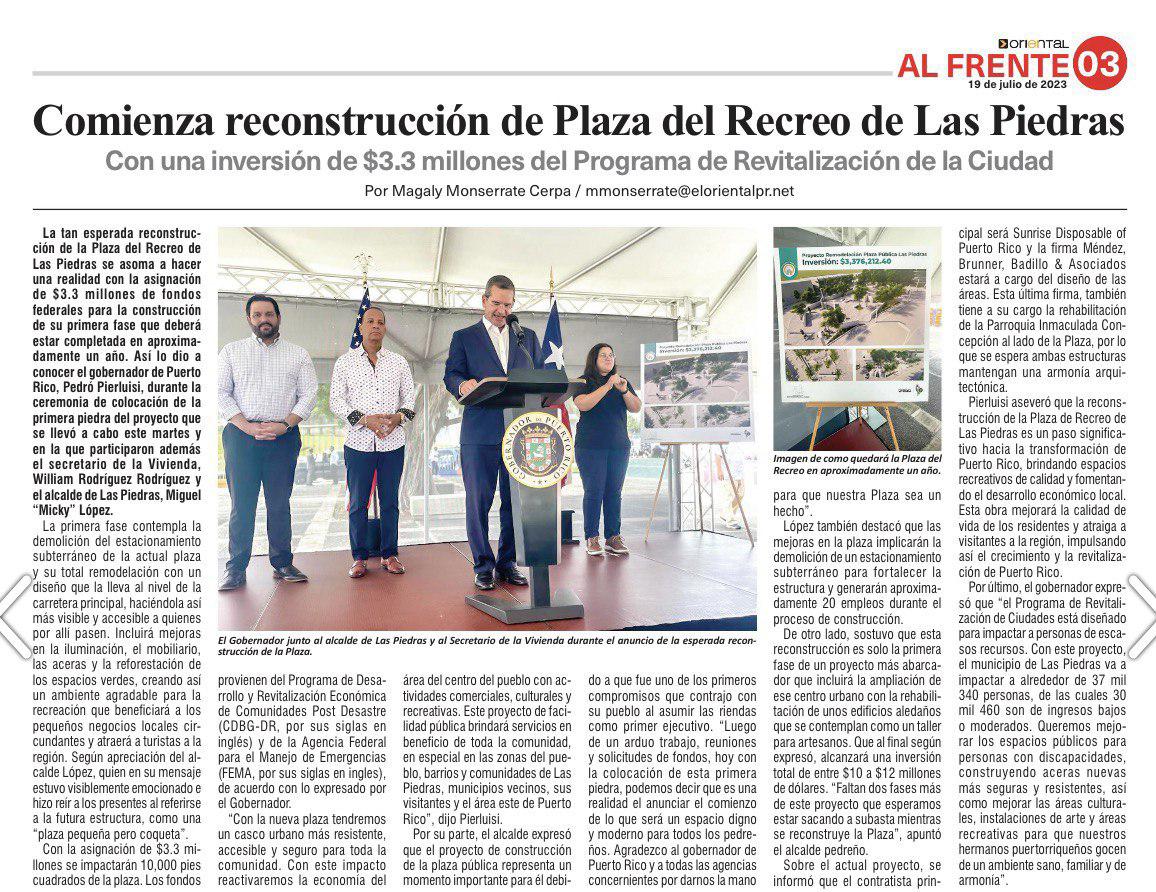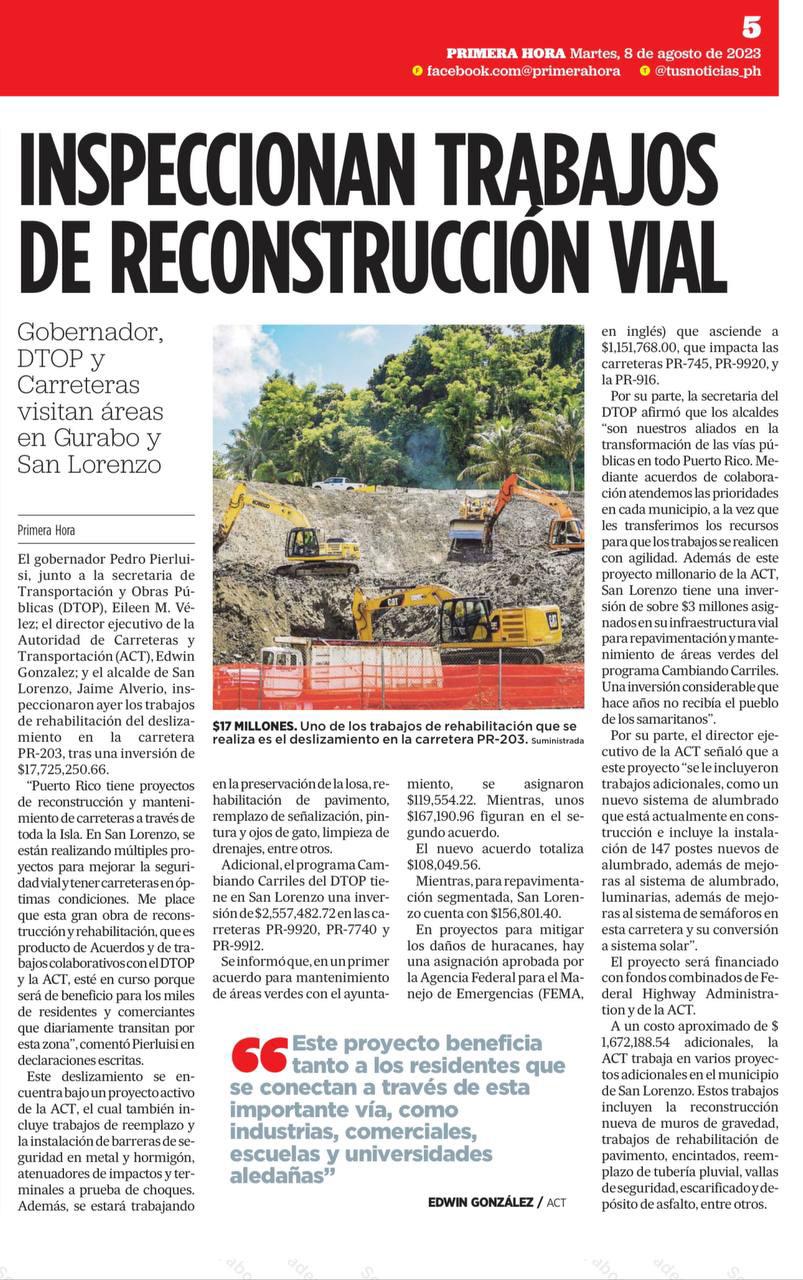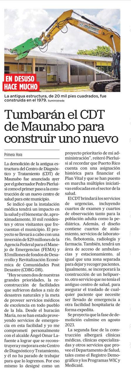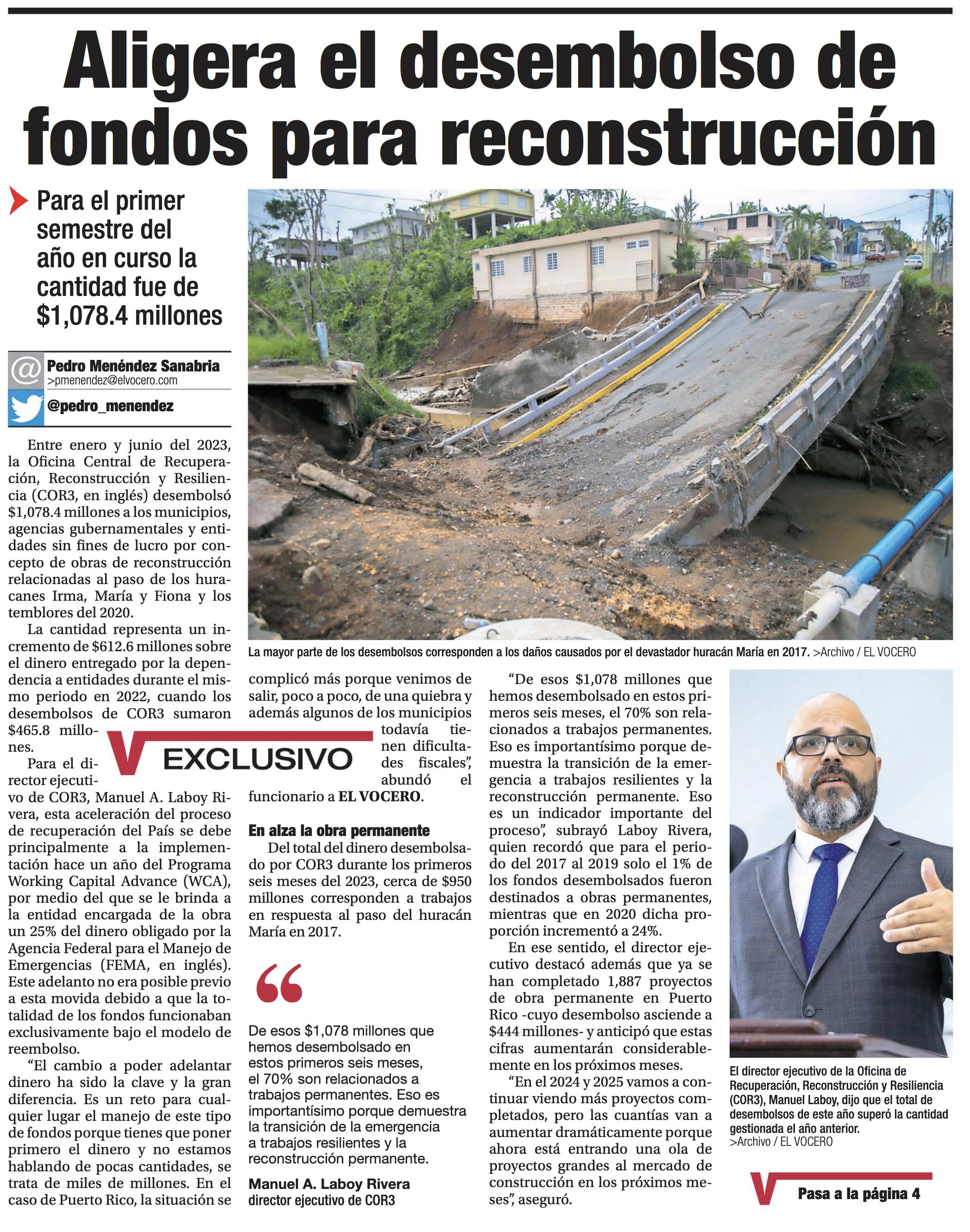 proyectos permanentes, incluyendo varios grandes que suman $20 millones. El Gobierno de Puerto Rico tiene un compromiso grande con nuestra gente y colaborando con FEMA durante este 2024 vamos a continuar adelantando la reconstrucción por toda la Isla” indicó el gobernador Pedro Pierluisi en declaraciones escritas.
