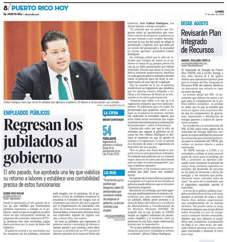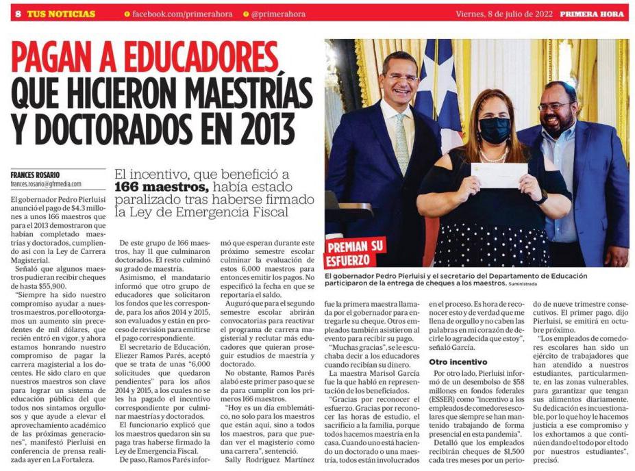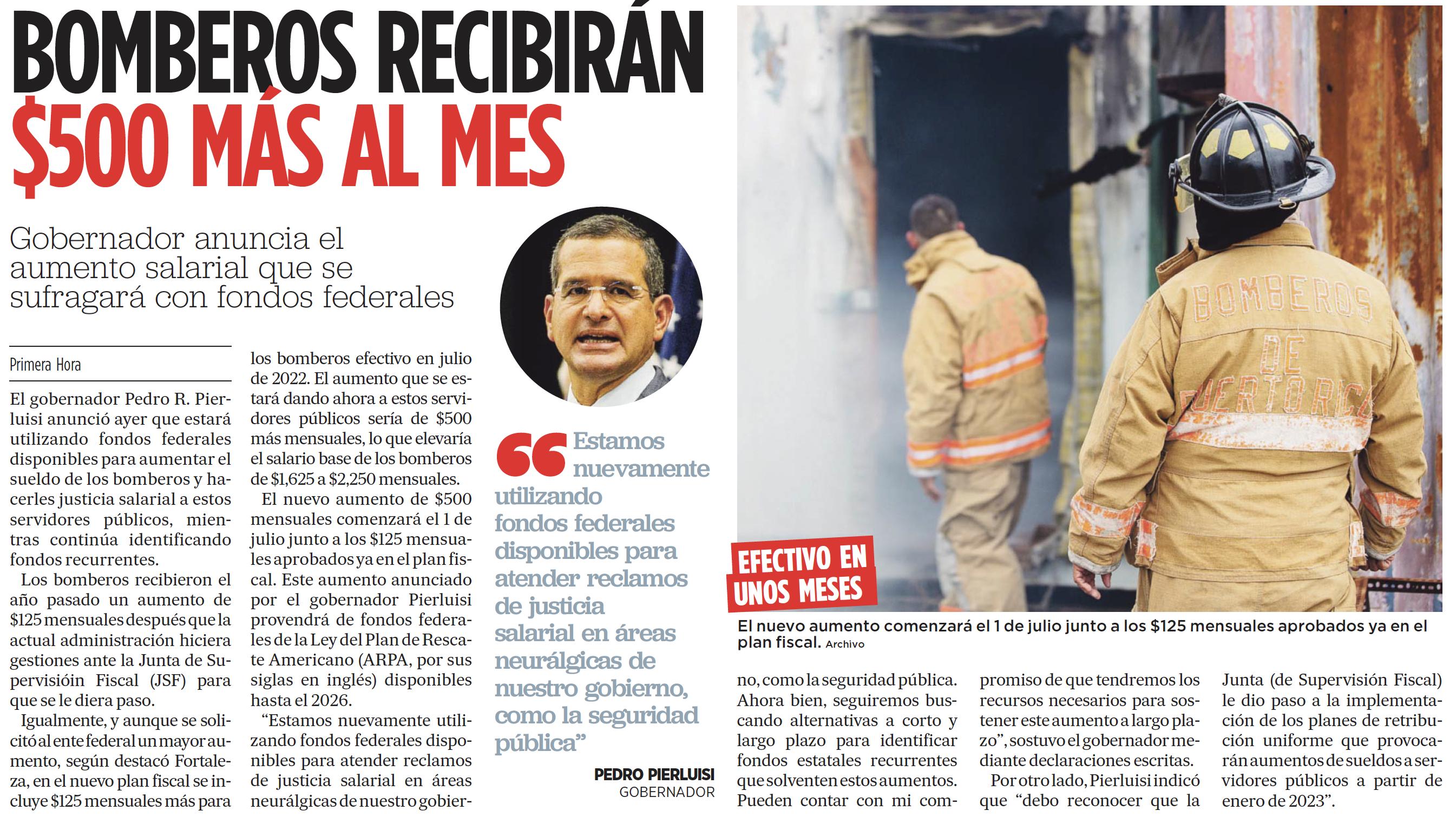 El gobernador de Puerto Rico, Pedro R. Pierluisi, convirtió en ley el Proyecto de la Cámara 1593 que establece una aportación de hasta un máximo de 50% de su retribución promedio a los policías activos o retirados del Negociado de la Policía.