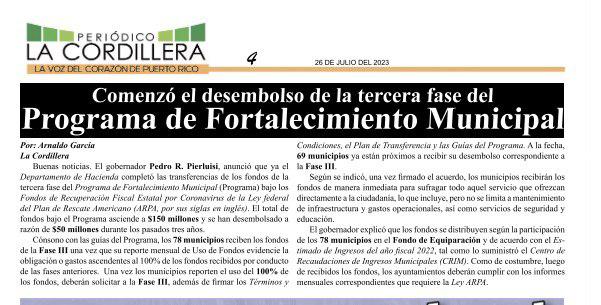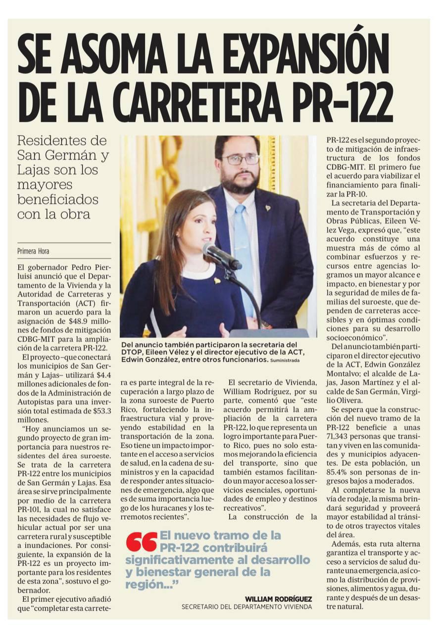 Hasta la fecha, el municipio de Coamo es el solicitante con la mayor aprobación, con cerca de $10 millones, para remover y reemplazar un terraplén de tierra inclinado y otros componentes para reconstruir la carretera en un vado localizado en el barrio Pasto. Además, el municipio de Naranjito recibió una obligación de más de $4.7 millones para reparaciones de una carretera en el camino Las Pelusas, Barrio Cedro Abajo.