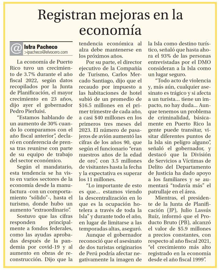 PUERTO RICO ESTÁ CRECIENDO.