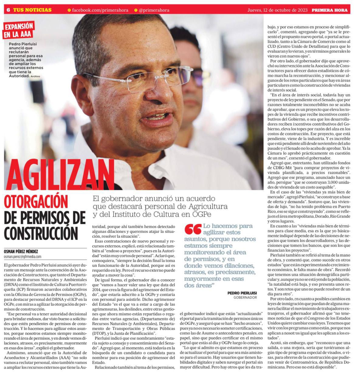 El gobernador asegura que es producto del trabajo conjunto entre FEMA y el gobierno